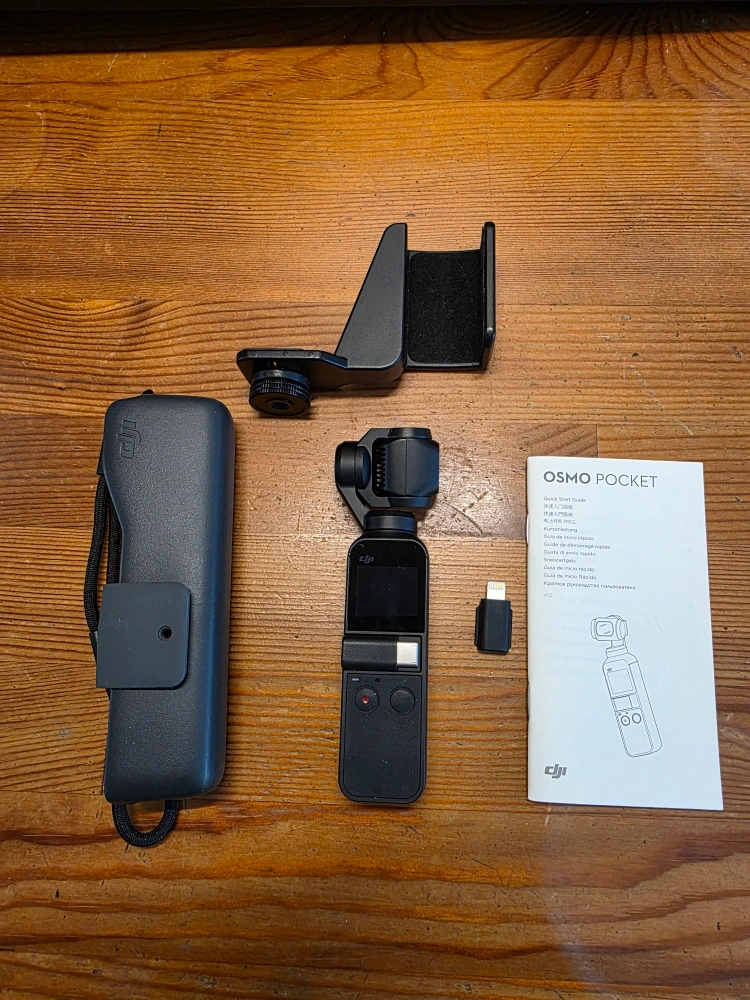 Selling a DJI Osmo Pocket! This is a handheld gimbal camera that combines mobility and stability in one device. It shoots sharp 12 MP still photos and stable video at up to 4K 60fps. Included is the Osmo Pocket, cover, wrist strap, smartphone adapter (USB-C), and holder that can attach to your tripod.