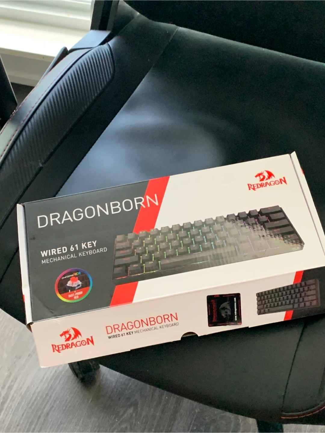 Selling a Redragon Dragonborn K630 wired mechanical keyboard! It's a 60% size, making it compact and great for saving space. The keyboard comes with its original box. Only used for 6 months, perfect condition!