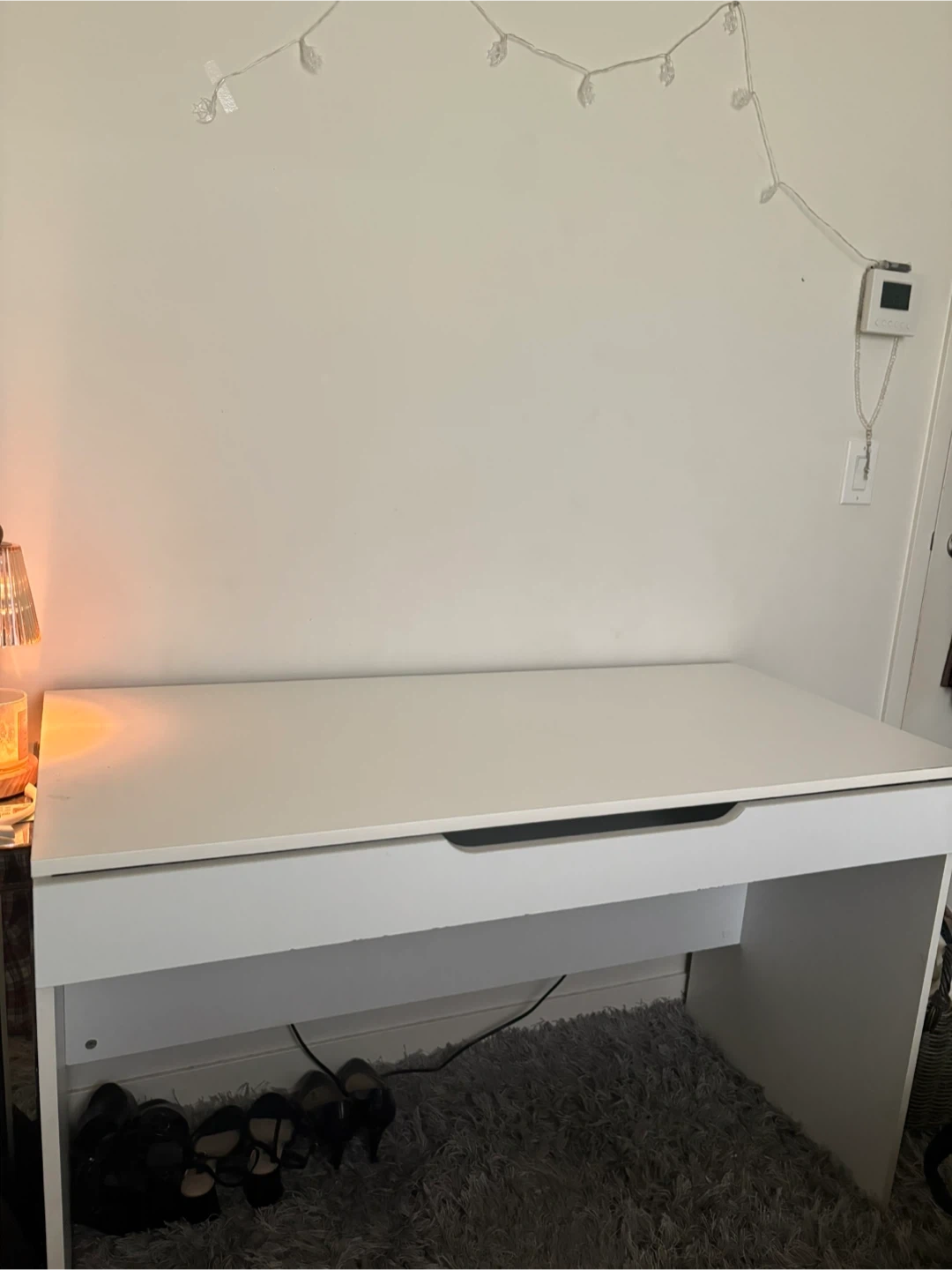 Selling a clean, white desk that's perfect for a home office or study space! It features a handy drawer underneath for extra storage. It's in great shape and ready for a new home