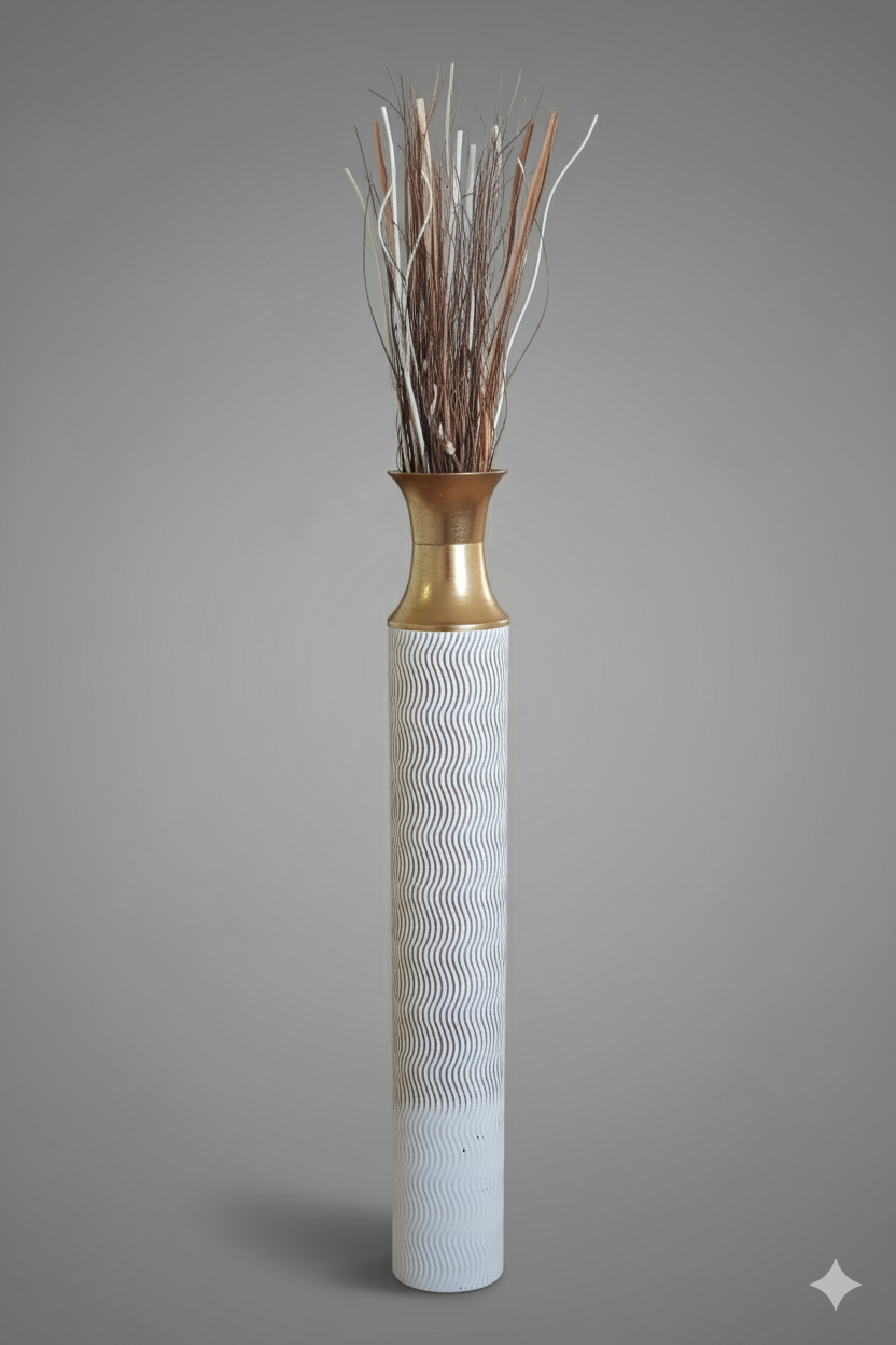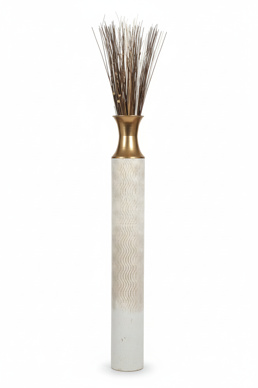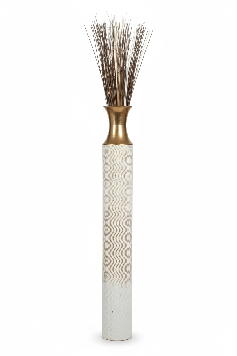 πΏ Decorative Gold White Modern Vase with Dried Grasses