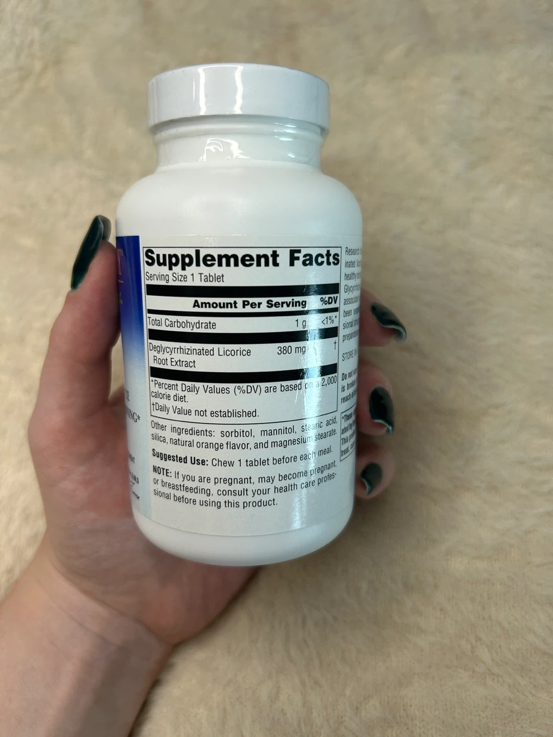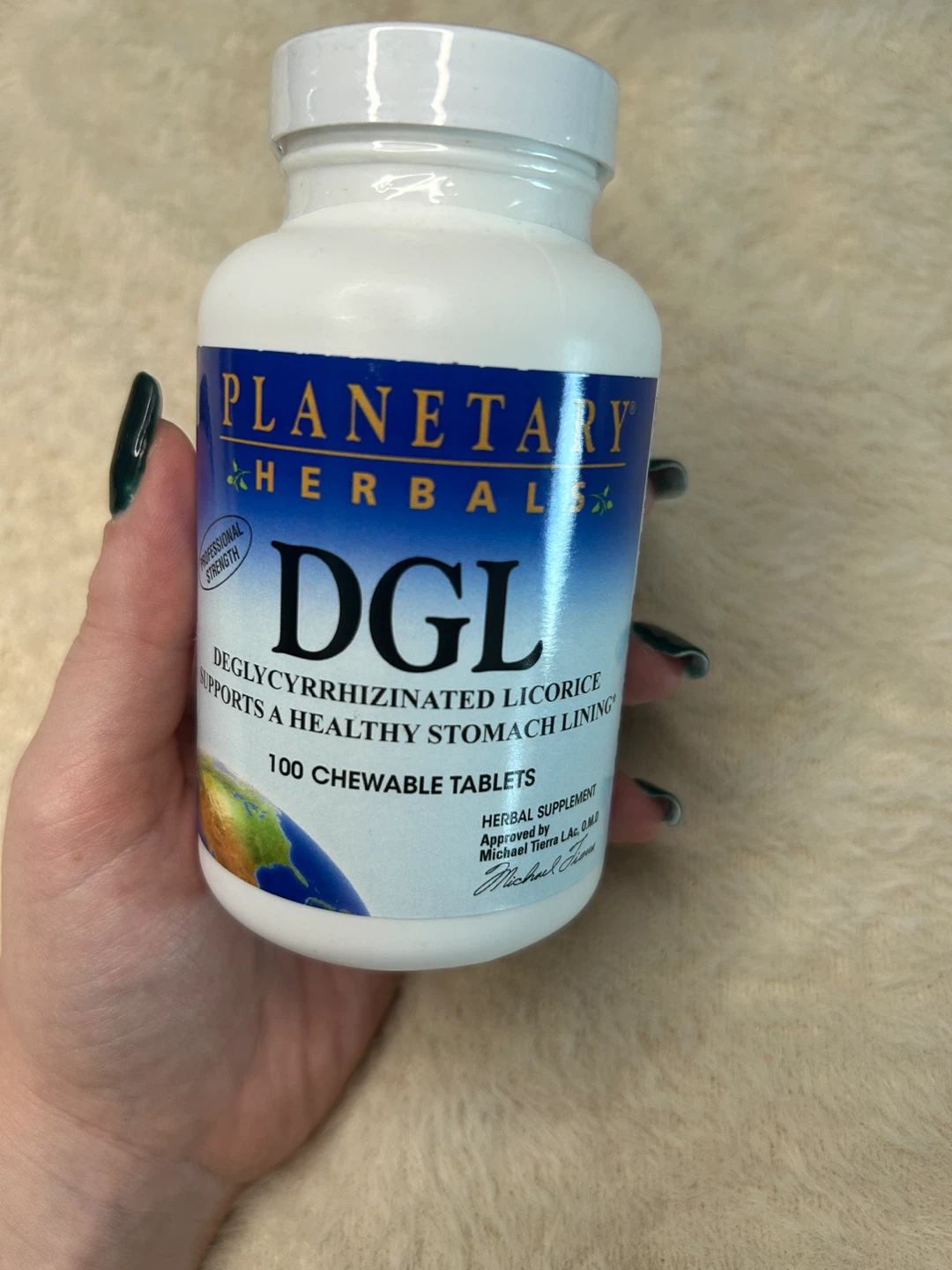 Selling a bottle of Planetary Herbals DGL (Deglycyrrhizinated Licorice) chewable tablets. These support a healthy stomach lining. Contains 100 tablets.