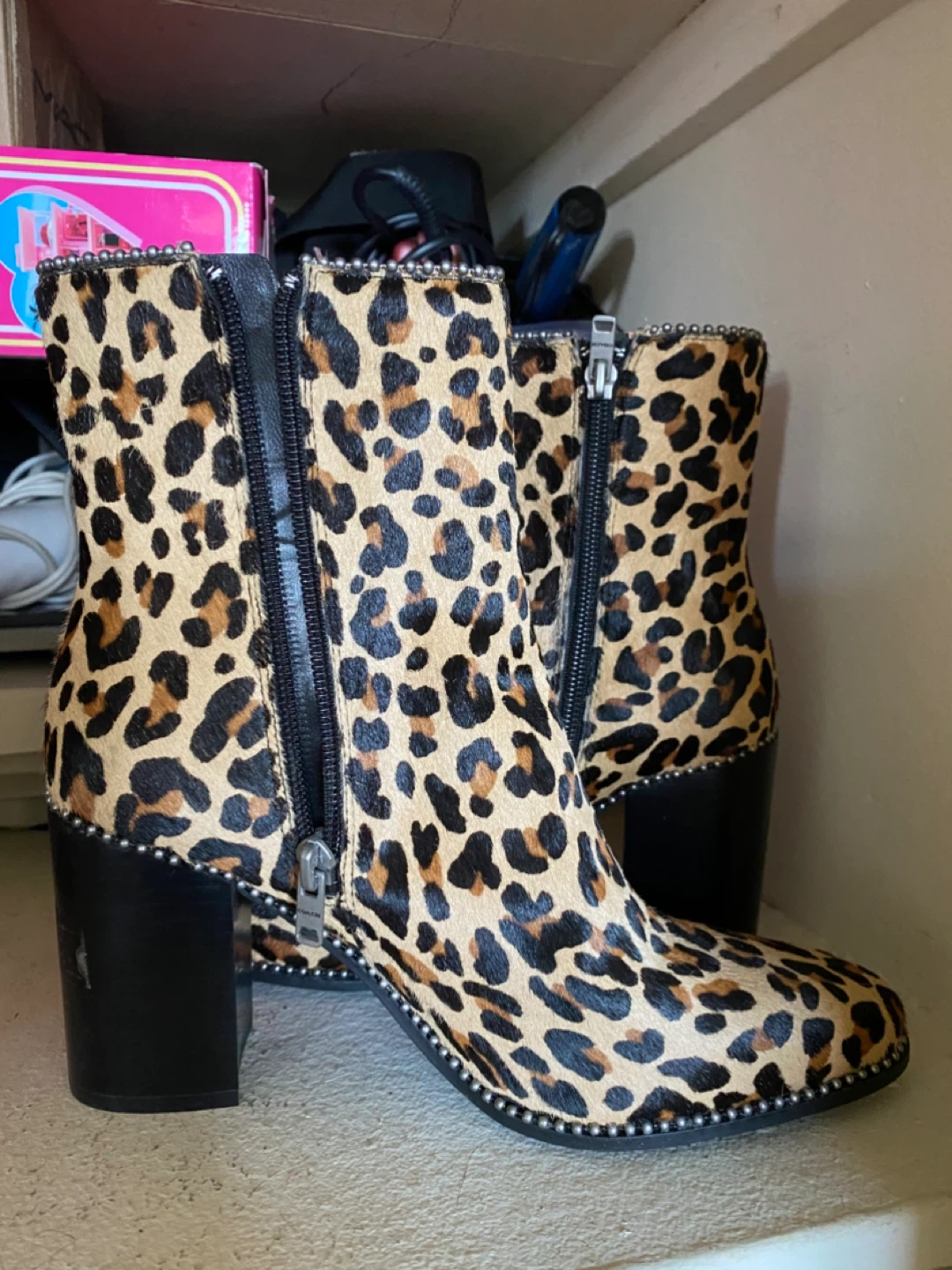 Buy & SellCoach Leopard Print Ankle Boots - Size 8Coach Leopard Print Ankle Boots - Size 8$50These stylish Coach ankle boots feature a bold leopard print and a black heel. Size 8.BrandCoachWHERE TO MEETGuildwoodView MapSELLERverifiedDebbieGuildwood1013 reviews1 chats·0 favorites·17 viewsSEND CHAT TO SELLERHi Debbie! I’m interested in your listing.Hi Debbie! I’m interested in your listing.Get the Karrot app to chatSign In to chat