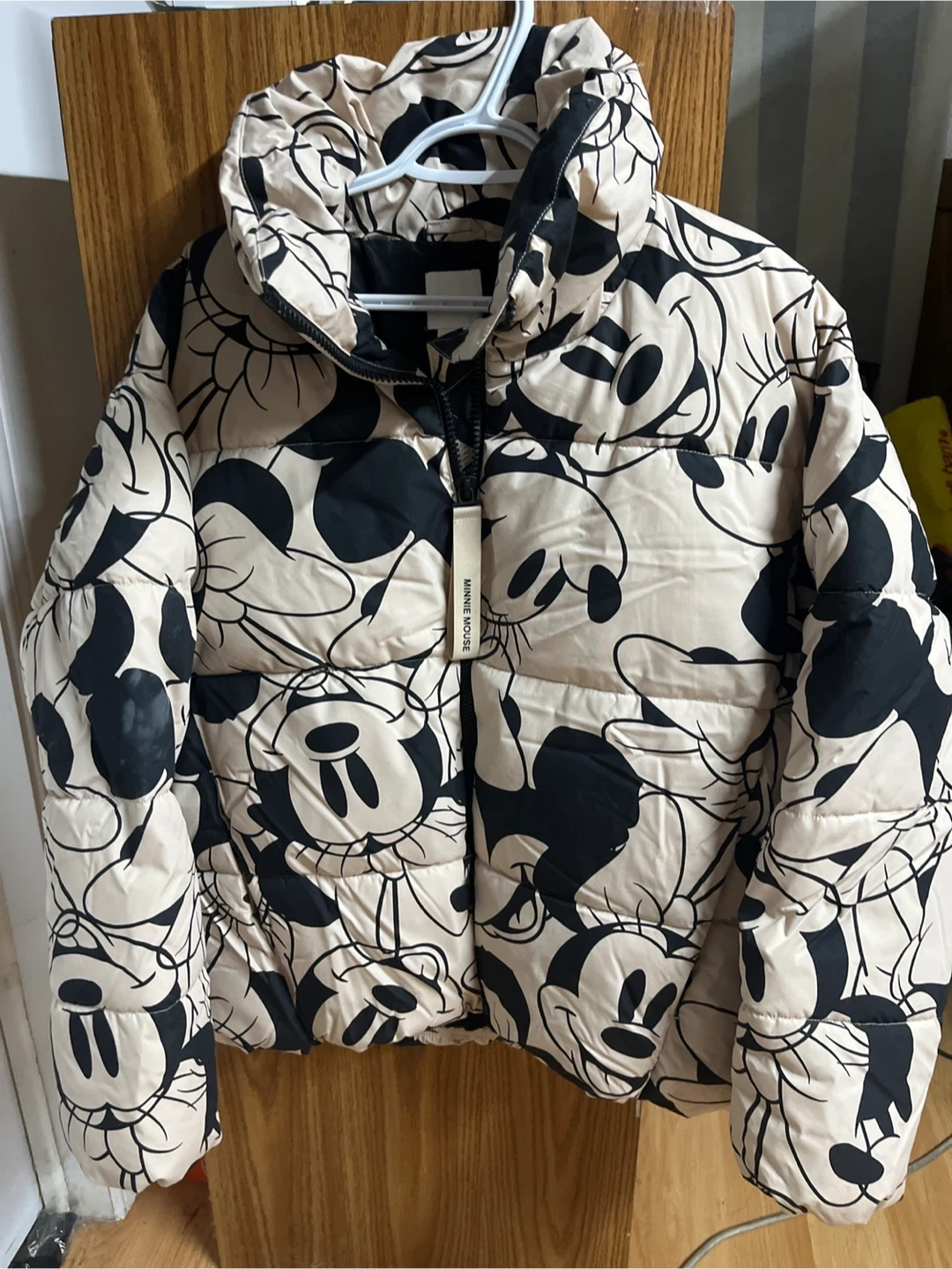 H&M Mickey Mouse Puffer Winter Jacket. There’s a small white mark on the right sleeve