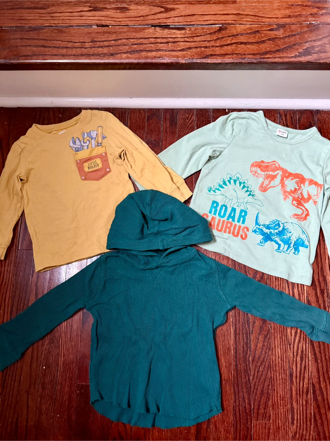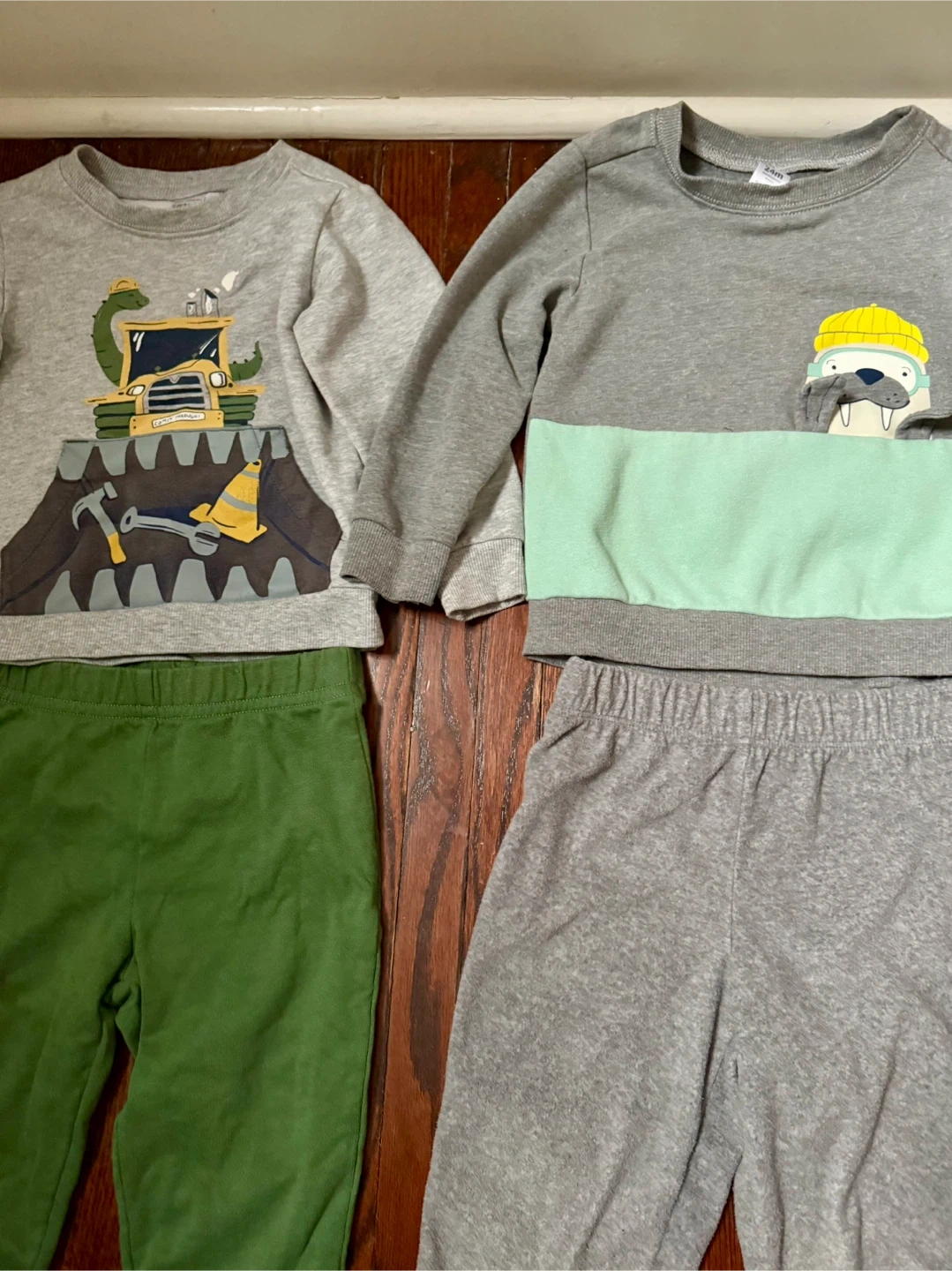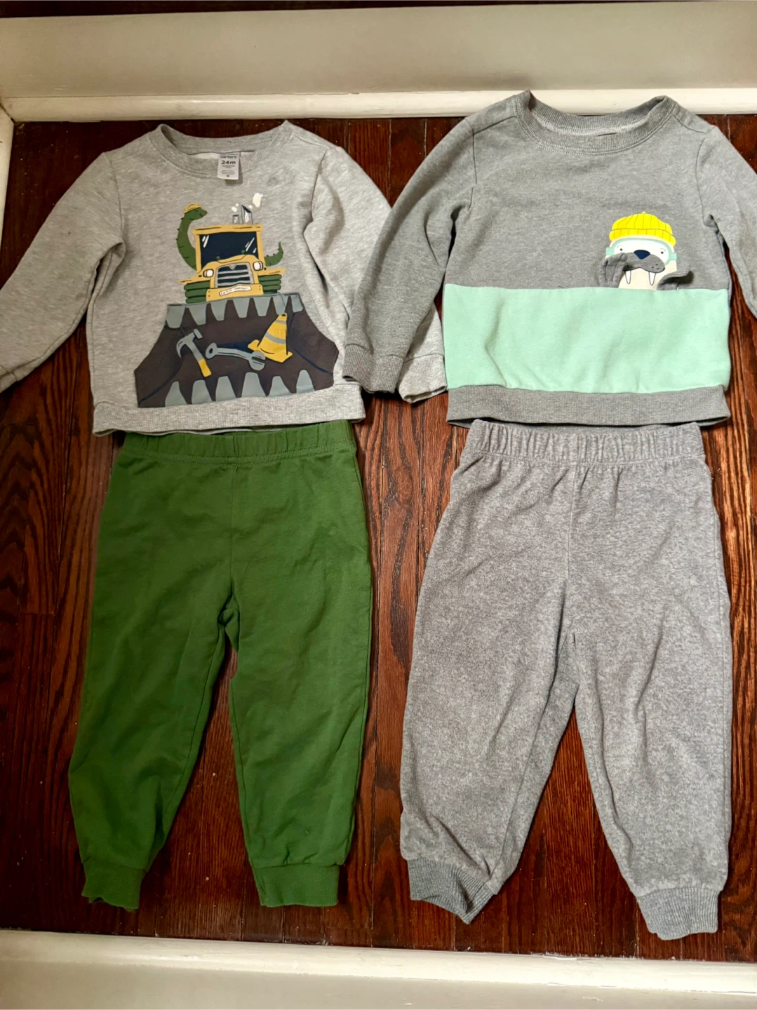 Bundle of Carter's baby boy clothes, size 24 months. Includes a mix of long-sleeved shirts and pants. No stains, no rips, no fuzzing. Smoke-free home, free hangers.