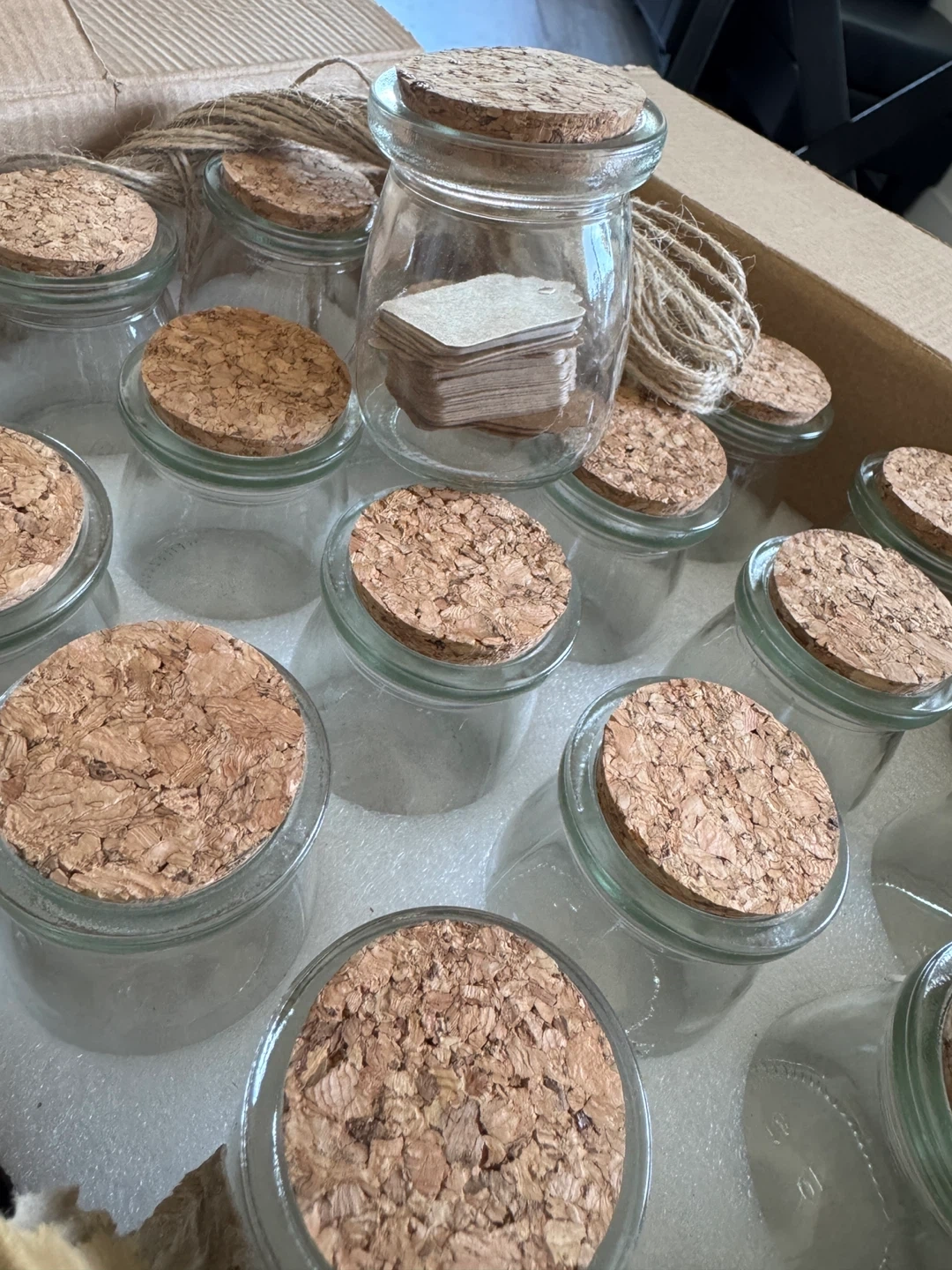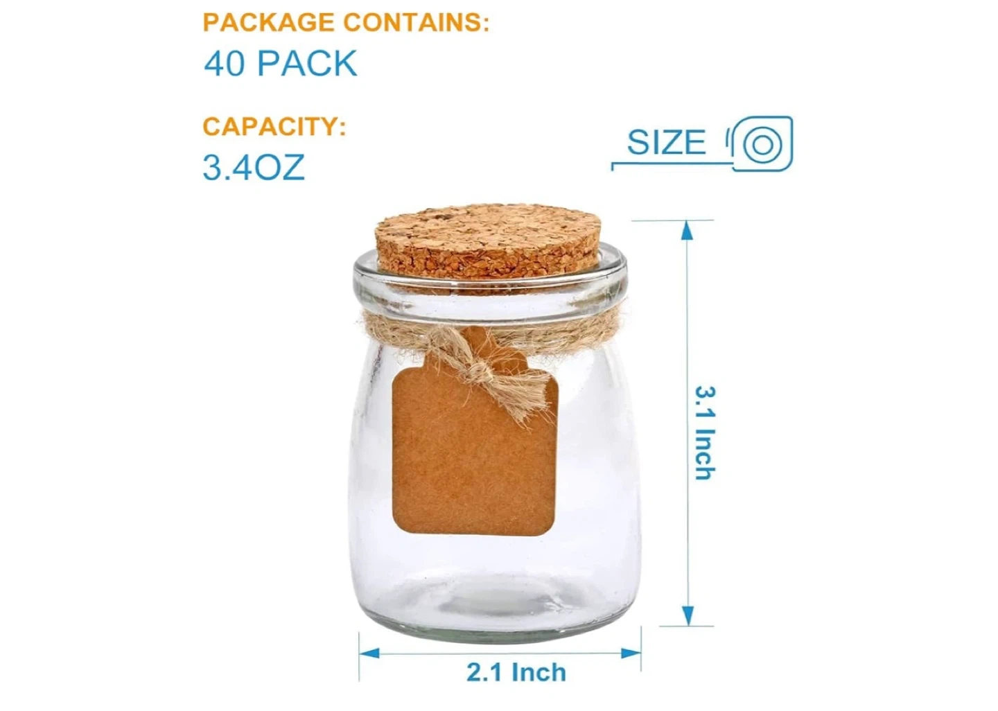 *CASH Only* Brand New I have a set of 40 glass jars, each with a cute cork lid. They're perfect for storing spices, honey, DIY accessories, mini yoghurt mason jars or wedding favors. Each jar has a capacity of 3.4oz and measures about 3.1 inches tall and 2.1 inches wide [Check Out My Other Listings]