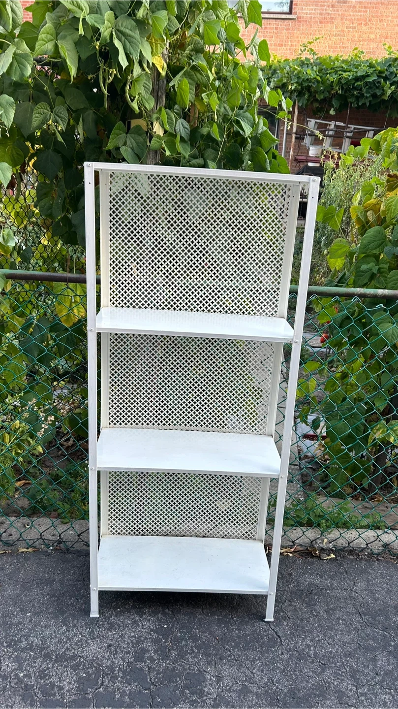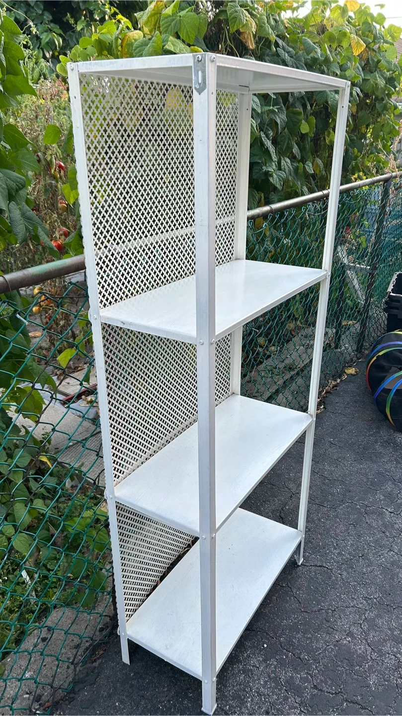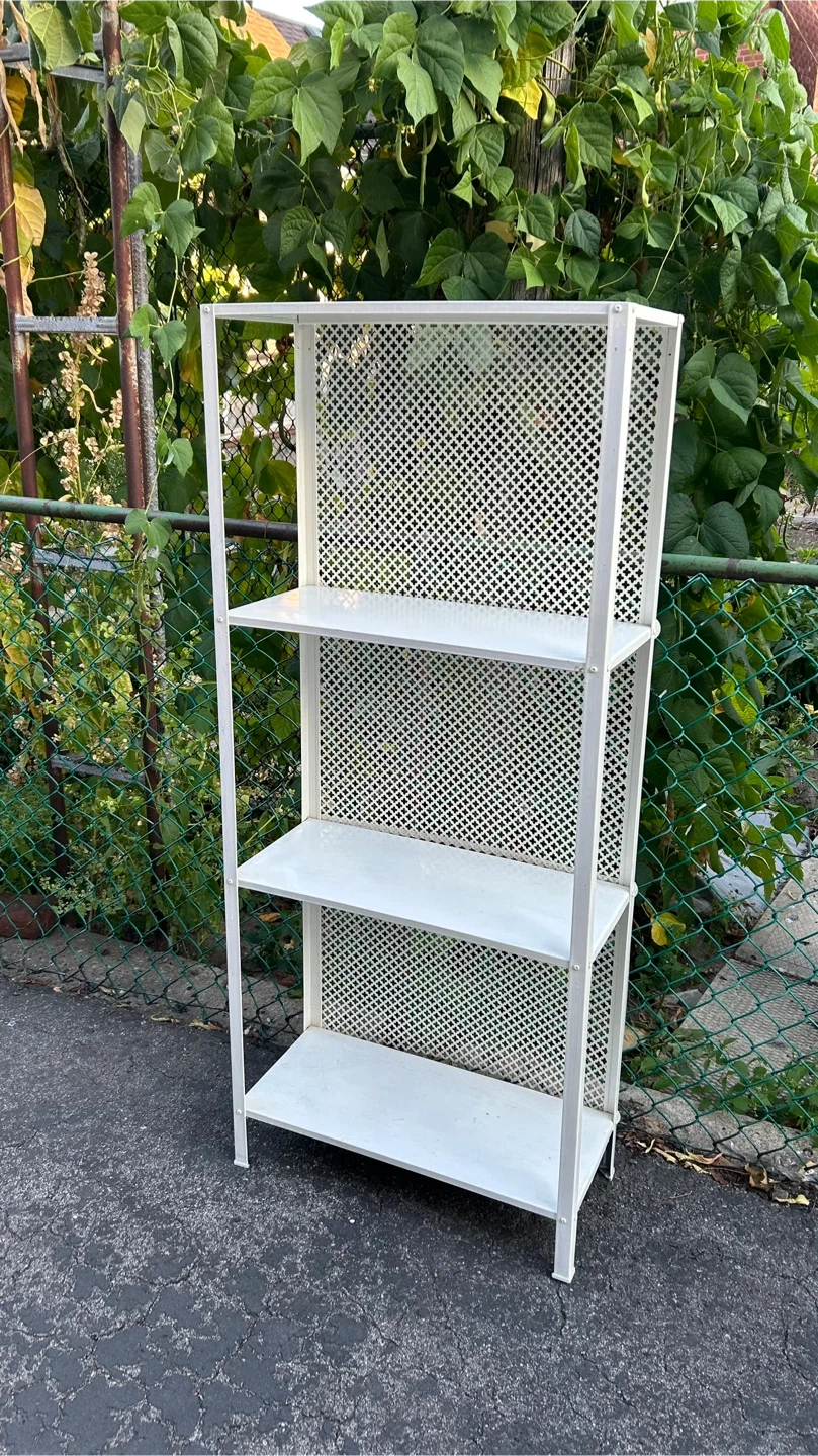 Selling a handy white metal shelving unit! It's perfect for adding some extra storage to any room. It's in great shape and ready for a new home. It's a simple design, so it will fit in with any decor