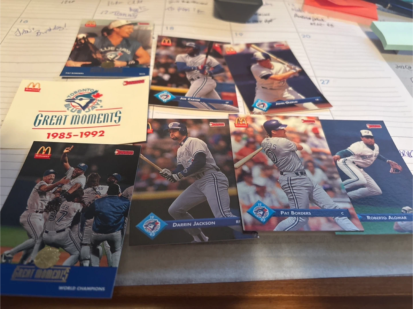 Selling a collection of Toronto Blue Jays Great Moments trading cards from 1985-1992. These cards feature iconic players and moments from the team's history. A great addition for any Blue Jays fan or collector!