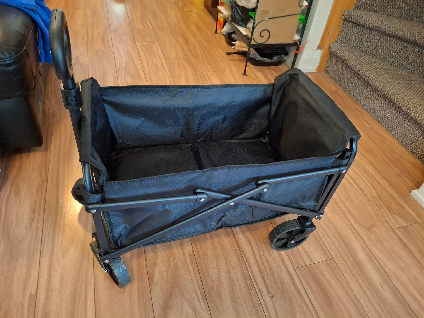 1000+Selling a black folding wagon. perfect for hauling groceries, camping gear, or anything else you need to move around easily. Folds up for convenient storage when not in use new