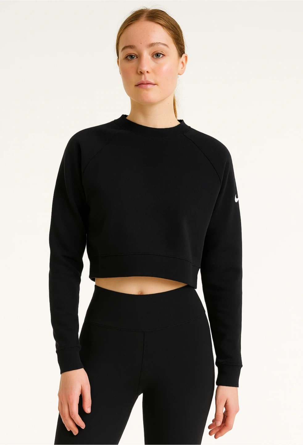 Selling a black Nike long sleeve crop top! It's in great condition and features the iconic Nike swoosh on the sleeve. Perfect for workouts or casual wear!