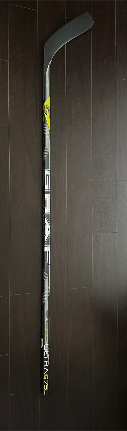 Brand new with stickers on; never used: Graf Ultra G75 Lite hockey stick. This brand is discontinued and very rare/hard to find now. It's a right-handed stick with an 85 flex. The blade pattern is GP088, similar to Patrick Kane. It weighs approximately 420 grams.