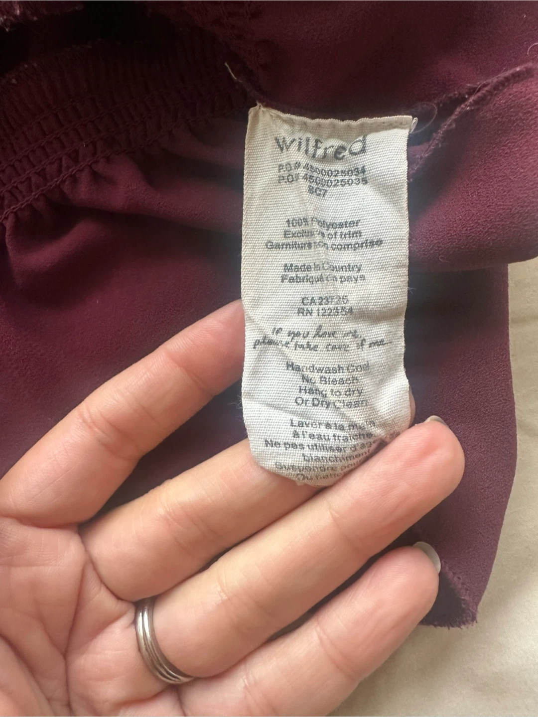 Wilfred blouse in a lovely burgundy colour. It's a size XSmall and made of polyester. Perfect for a casual or dressed-up look.