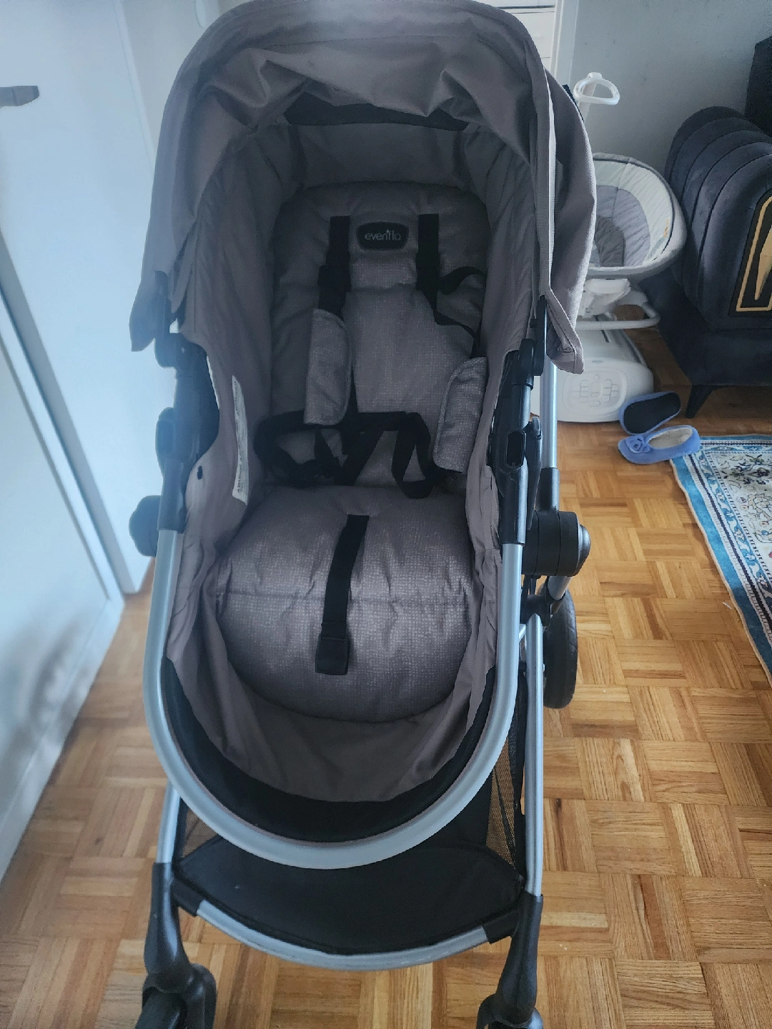 Selling an Evenflo Pivot stroller. It's in great condition and ready for a new home! The stroller is a neutral colour, making it perfect for any family. It's lightweight and easy to maneuver, making outings a breeze