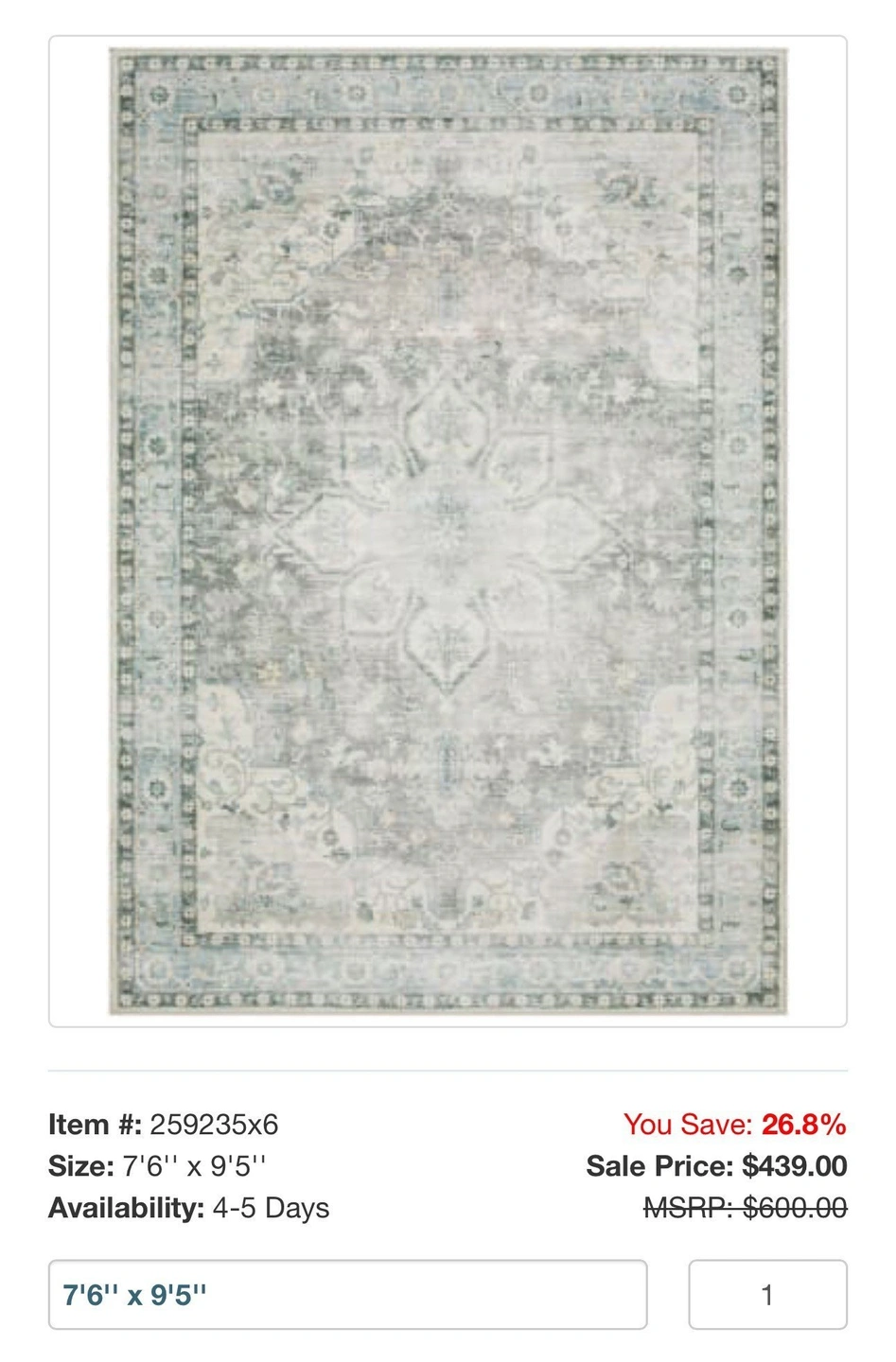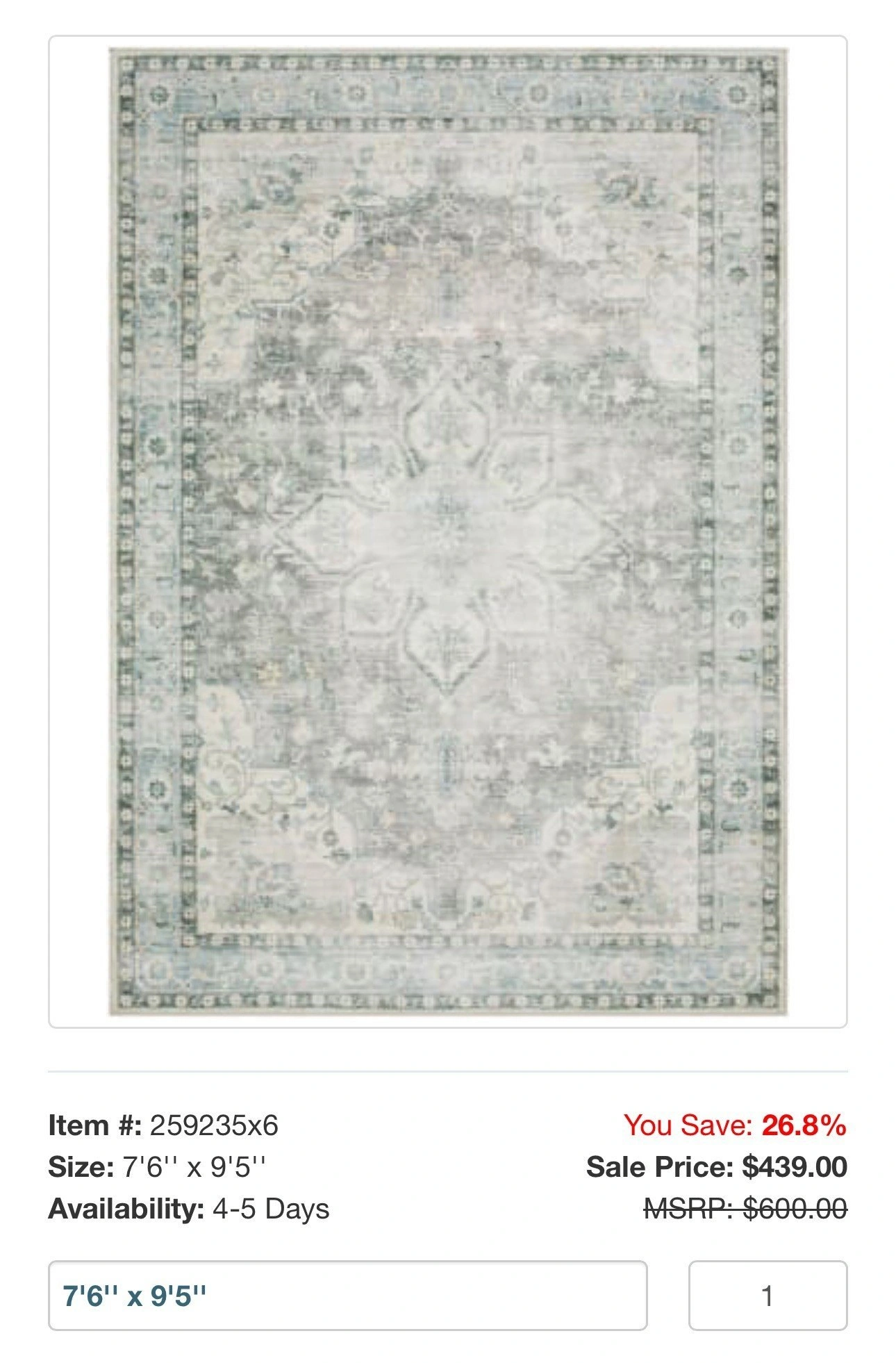 Add a classic airy feel to any space with this 7'6" x 9'5" washable area rug by Surya finished in muted greys, greens and creams all wrapped up in a vintage Persian inspired design featuring a non-slip backing and a low super soft pile for easy maintenance. -Polyester construction -Non-slip backing -Machine Washable -Soft 0.12" pile height Brand new $145 pickup in Binbrook. Retails for $439. Considering the number of no-shows for pickups item will be sold on a first come first serve basis without deposit. All sales final, no refunds or exchanges. Please measure space before purchasing. Thank you for understanding. Due to the difference of device screen color settings, some rug colors may vary slightly. We try to represent all rug colors as accurately as possible. Color will be affected by environment, lighting, and time of day. Debit and credit also accepted #6DM26