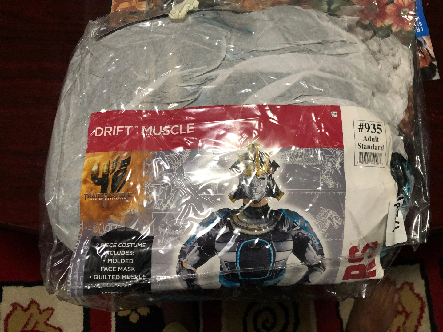 Selling a Transformers Drift Muscle adult costume. It's a standard size and includes a molded face mask and quilted muscle detailing. Perfect for your next costume party!