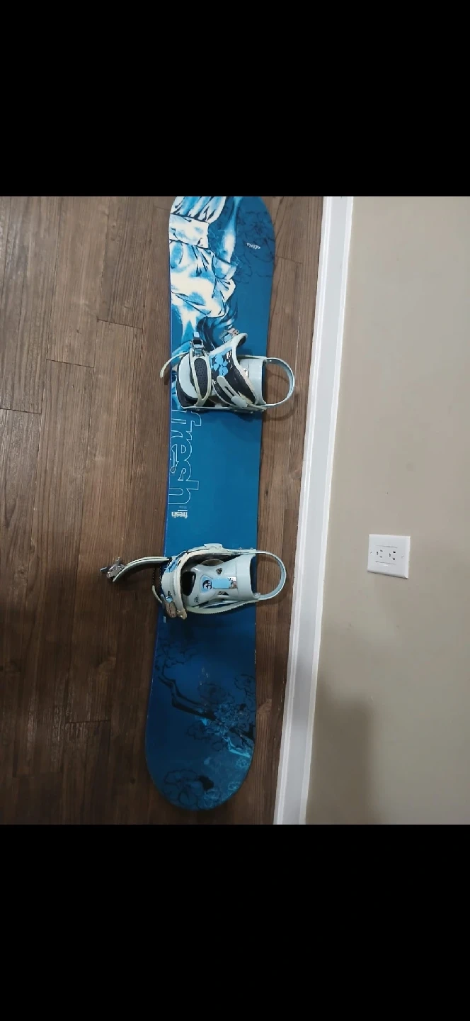 Selling a pair of Ride LS snowboard bindings. They are blue with a floral design. Please see pictures for condition!