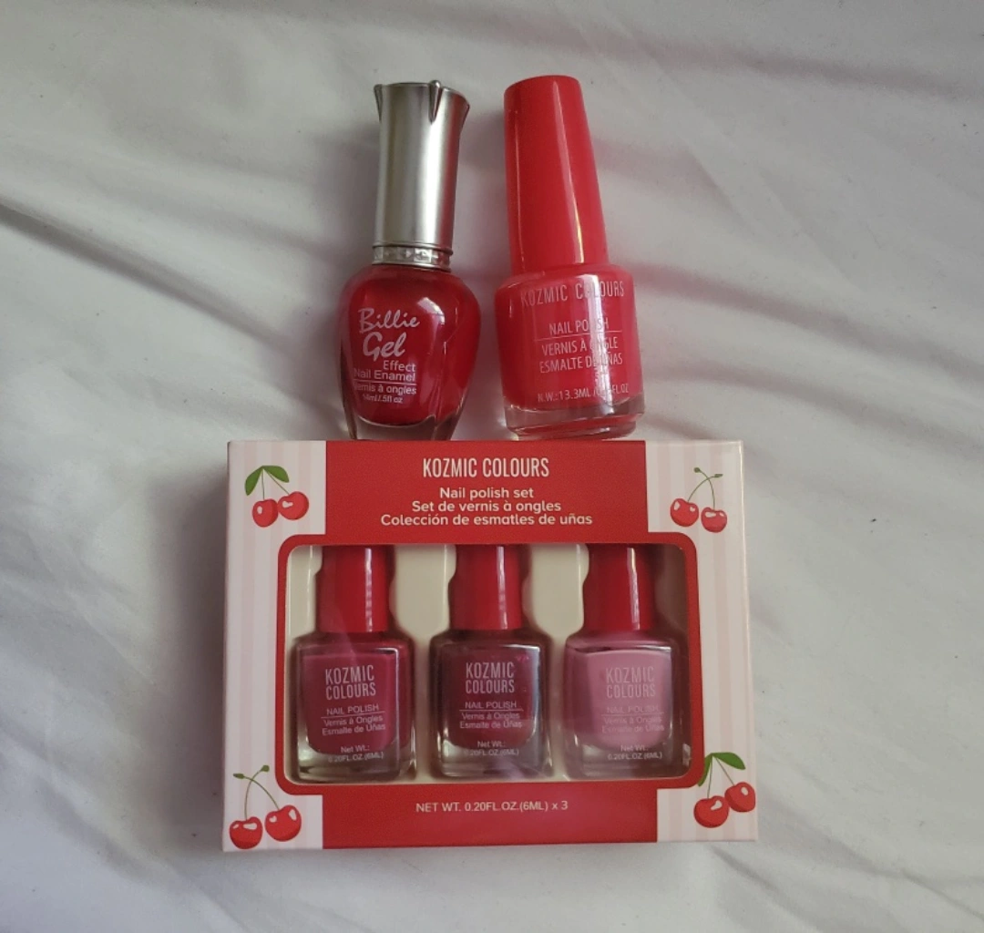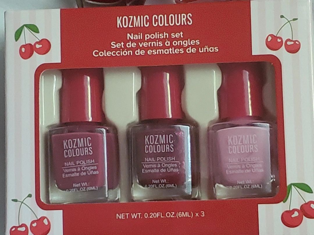 Selling a Kozmic Colours nail polish set that includes three different shades. Also included is a bottle of Billie Gel Effect nail enamel. Perfect for adding some colour to your nails!