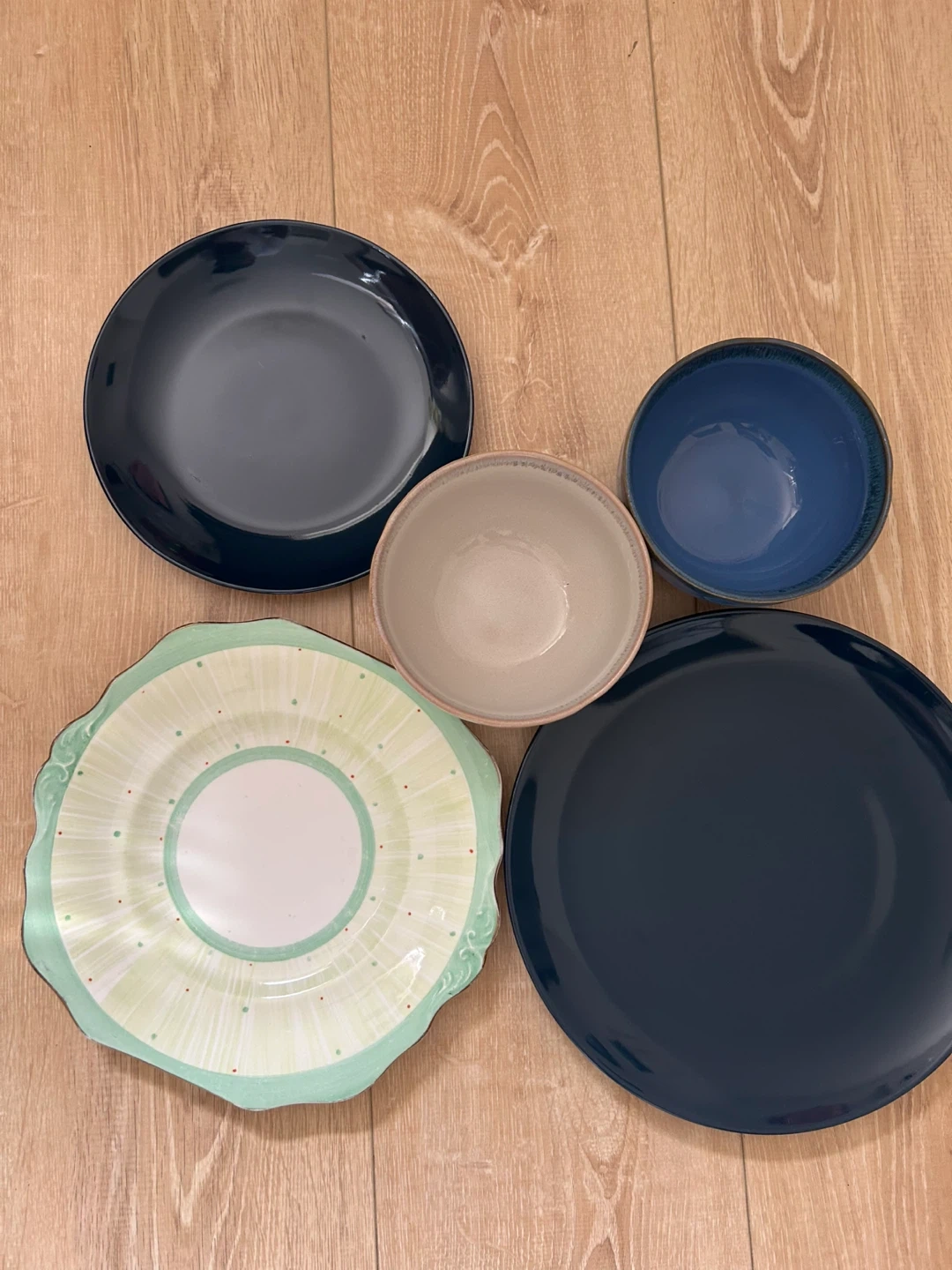 Selling a set of assorted plates and bowls! There are different colours and designs, perfect for adding a bit of variety to your kitchen. They're in great condition and ready for a new home