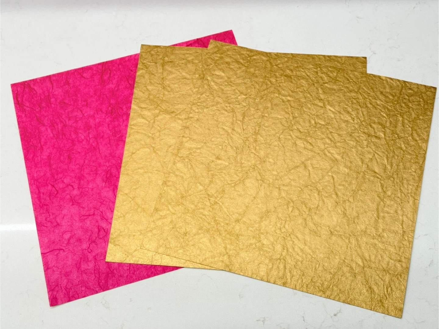 Selling these new crafted paper sheets in 1 pink and 2 gold! They have a unique texture that could be great for crafts or decoration. Use for scrapbooking too! 12x12 size