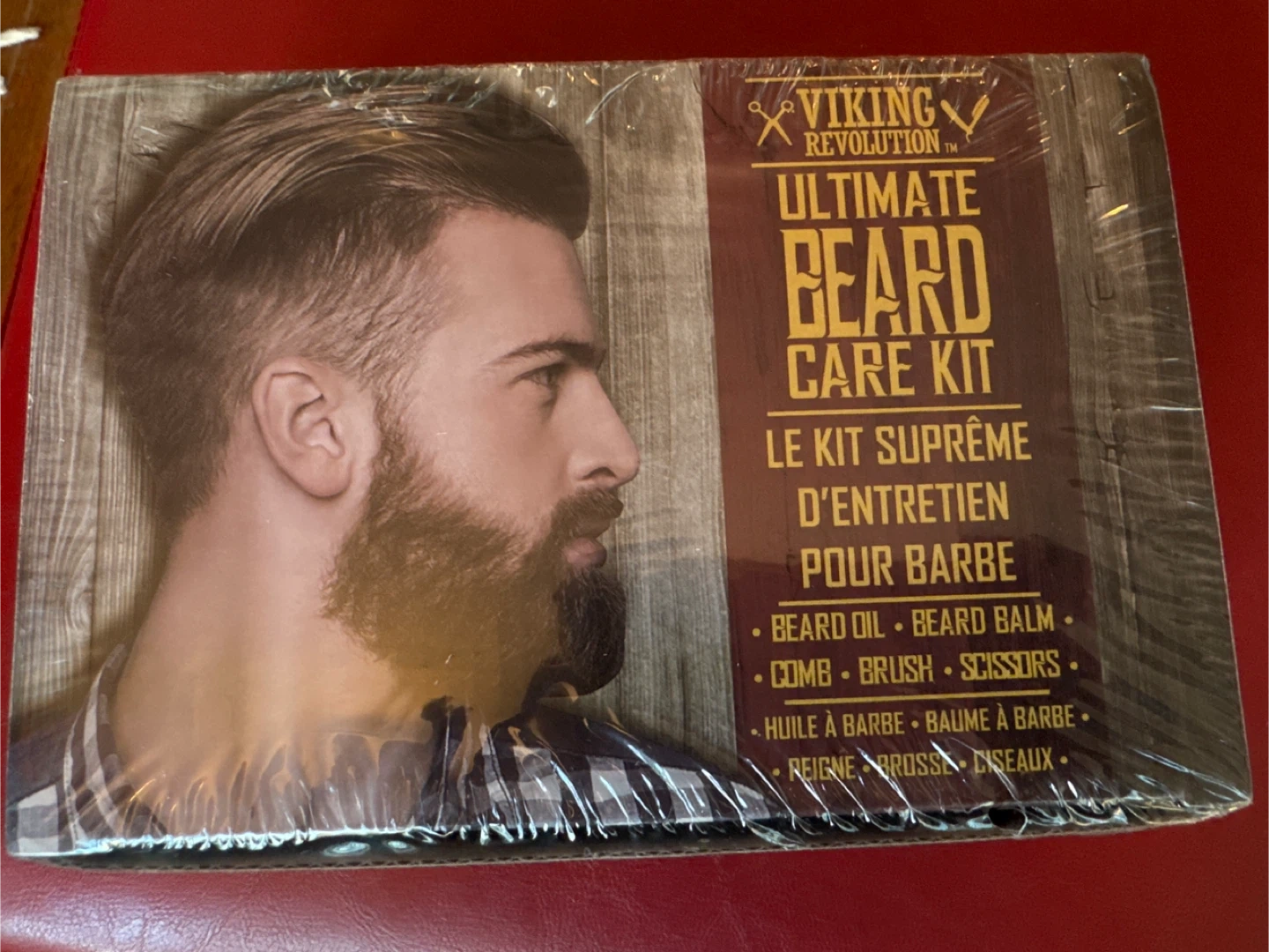 46Selling a brand new Viking Revolution Ultimate Beard Care Kit! It includes beard oil, beard balm, a comb, brush, and scissors. Keep your beard looking its best with this complete kit!