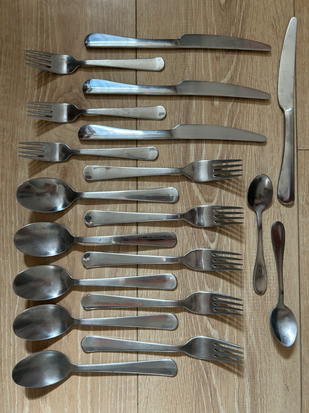 Cutlery! Includes forks, spoons, and knives. Great for everyday use or to supplement your existing collection. They're in good condition and ready for a new home