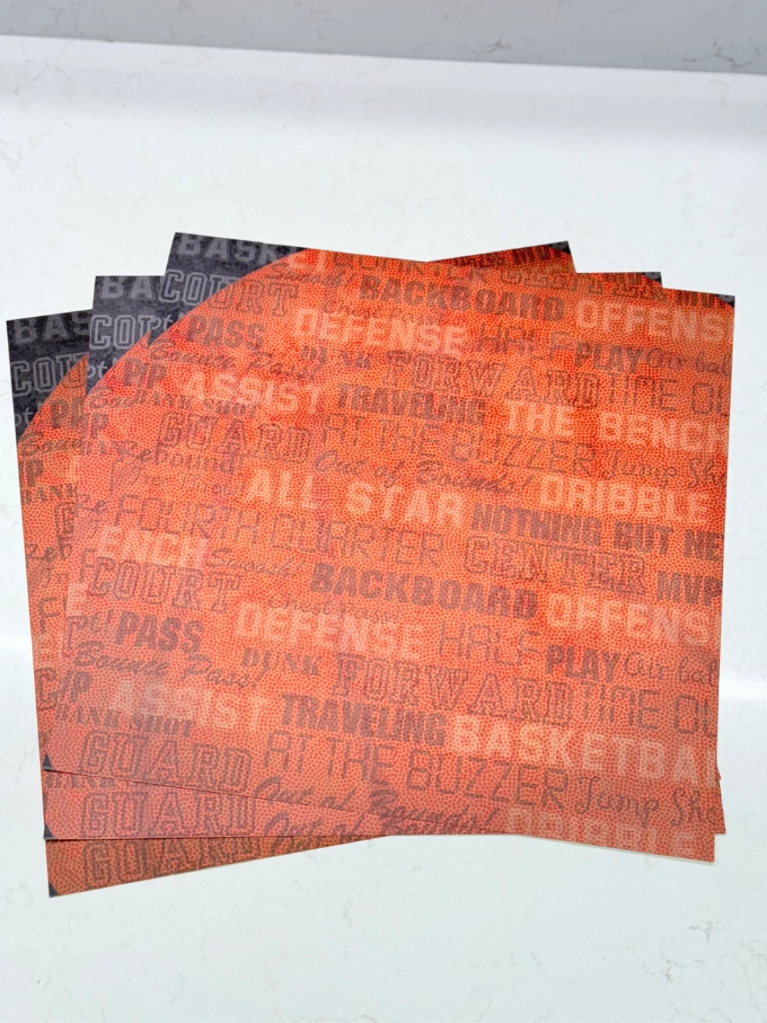 Scrapbooking paper w/sports theme, skating, basketball, field lines