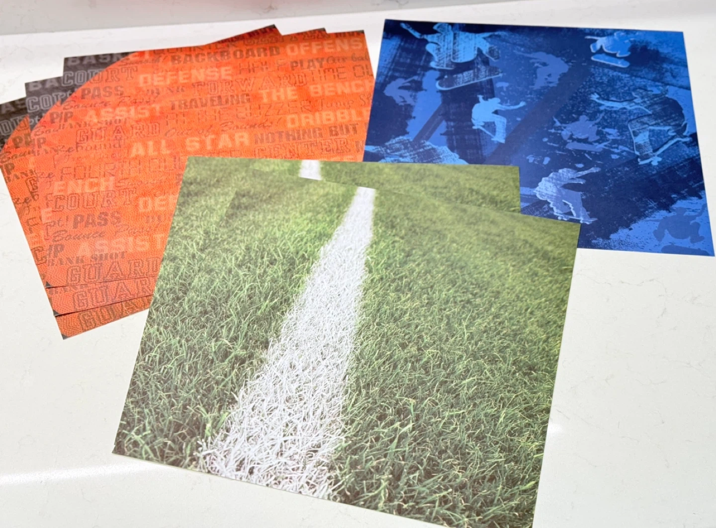 Scrapbooking paper w/sports, skating, basketball, field lines