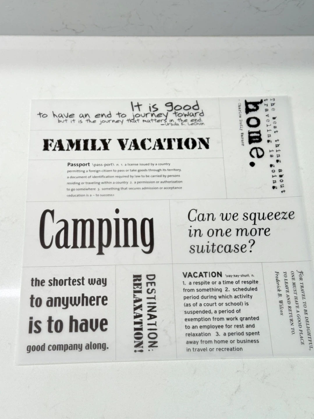 These are travel-themed decorative papers with various quotes and travel-related words! They would be great for scrapbooking or other craft projects- scrapbook items!