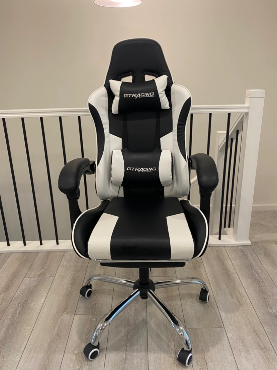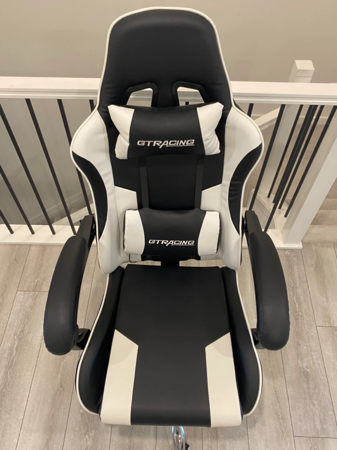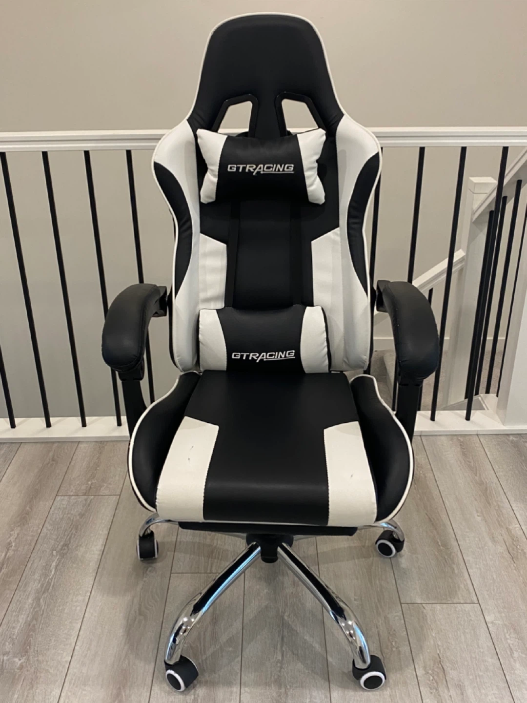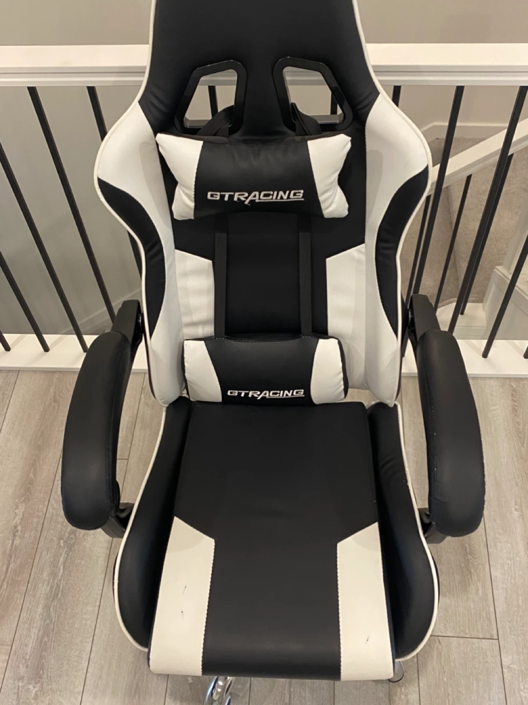 Selling a two GTRACING gaming chair in black and white. It's in great shape and ready for a new home! Perfect for long gaming sessions or working from home. The chair is comfortable and provides good support.