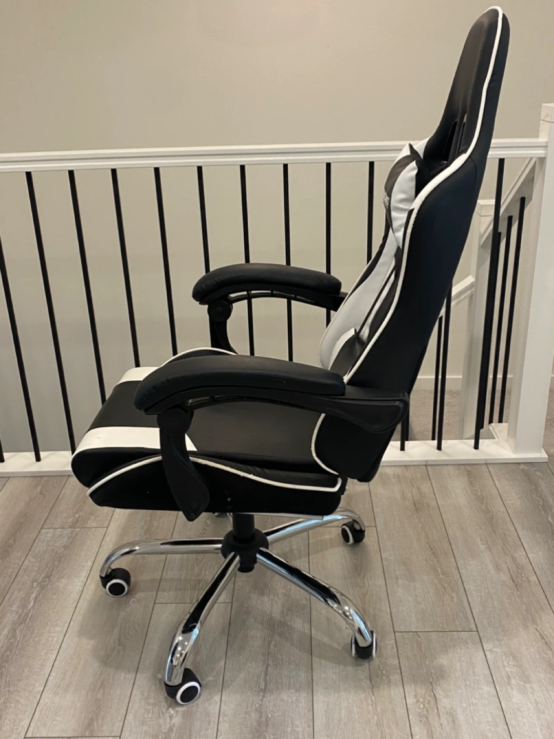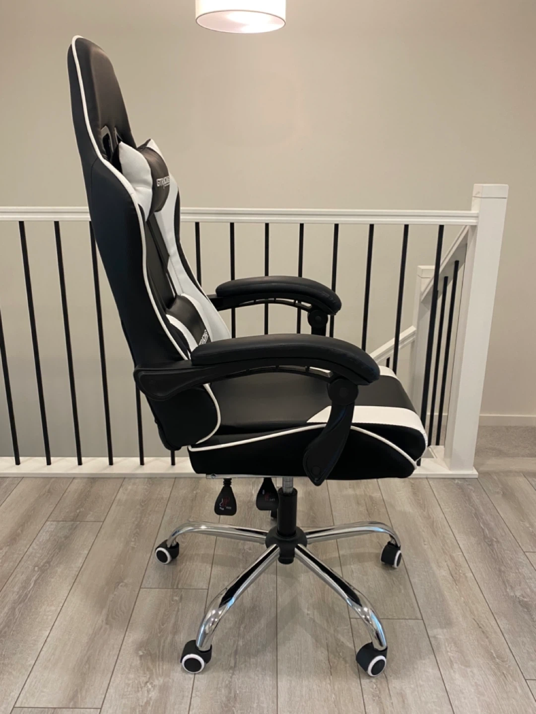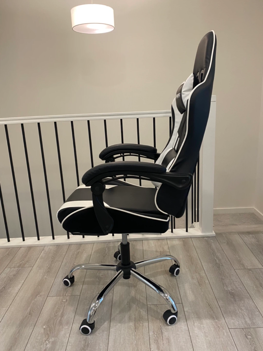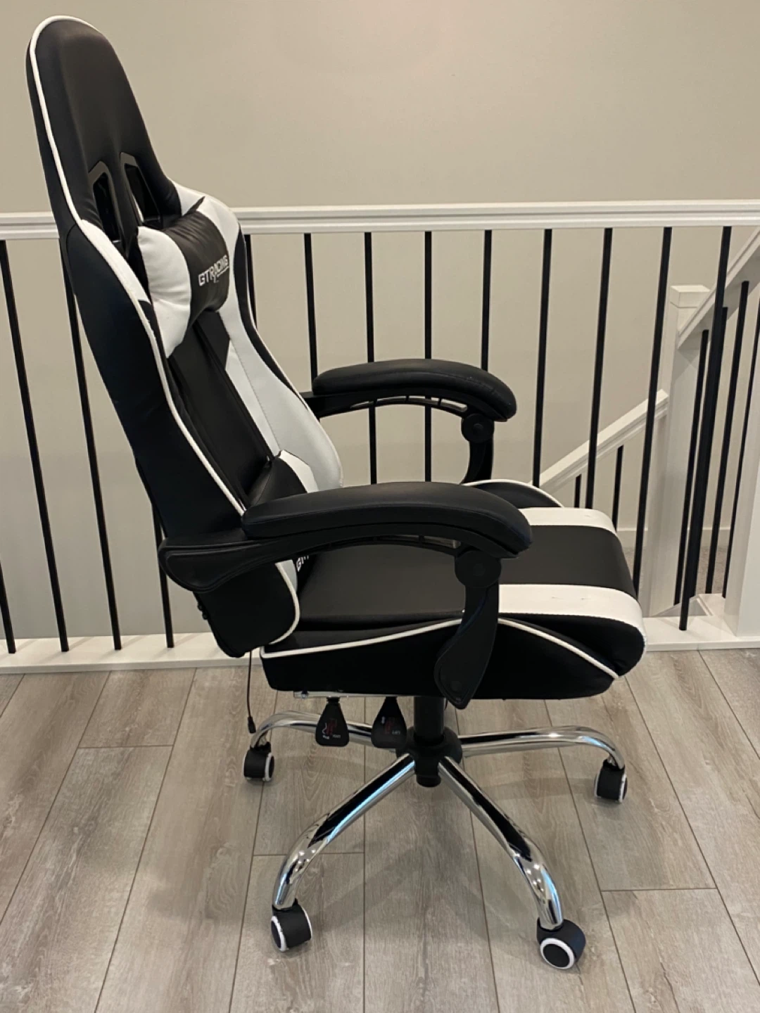 Selling a two GTRACING gaming chair in black and white. It's in great shape and ready for a new home! Perfect for long gaming sessions or working from home. The chair is comfortable and provides good support.