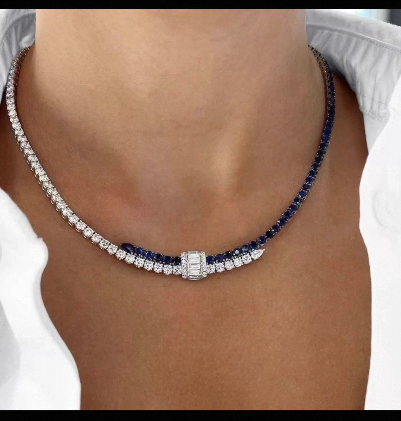 Tennis Necklace with Blue & White Stones