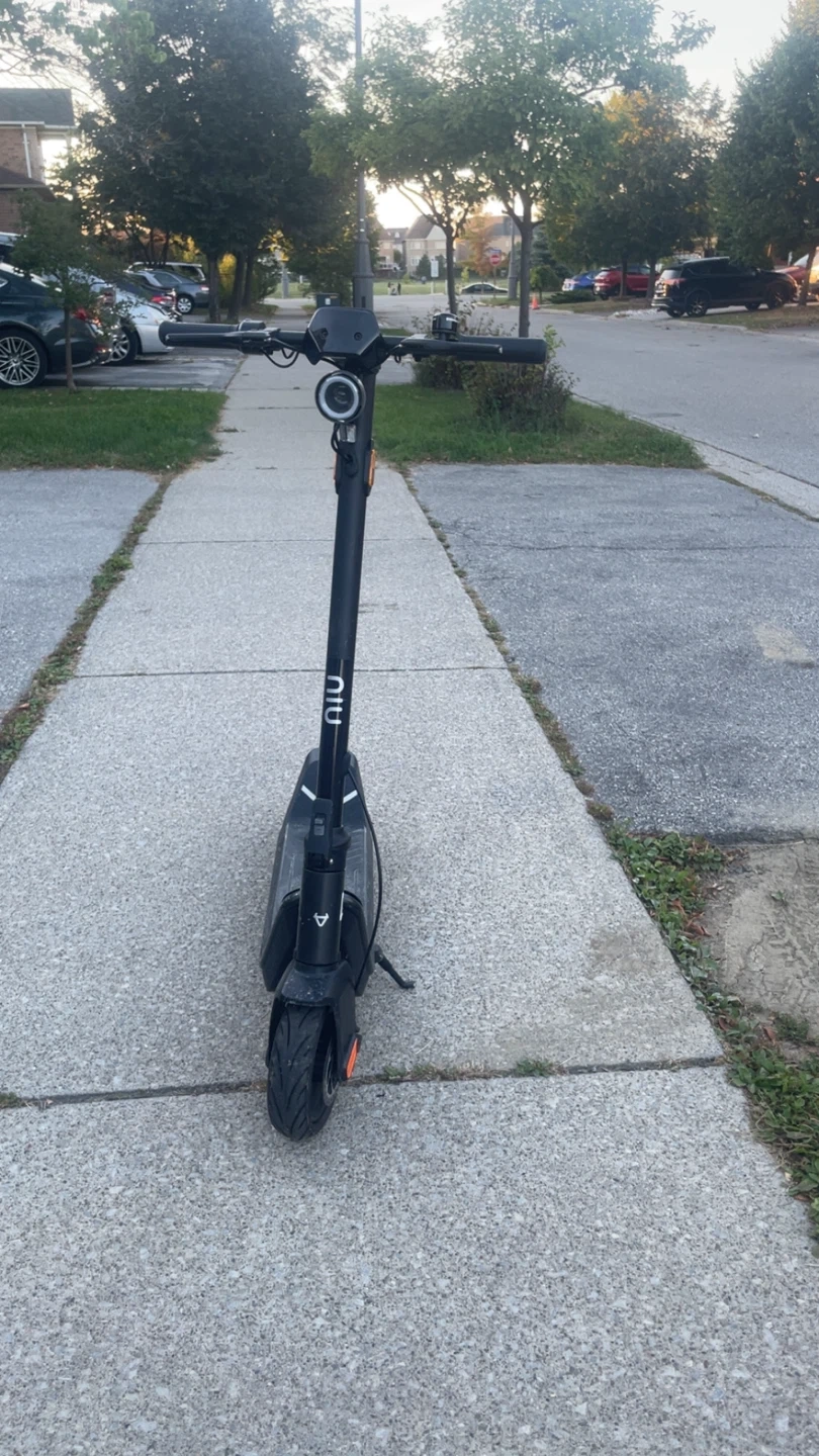 Selling a like new NIU electric scooter. It features Bluetooth connectivity and smart unlock. It also provides rider statistics and battery level information. The scooter has a 50km travel range and smart battery management with 6-hour fast charging. The scooters goes up to 32 km speed which is perfect for everyone to enjoy. The back tire is brand new. If interested please send a message. [ CHARGER INCLUDED] [ WILL BE CLEANED WHEN GIVEN TO YOU]