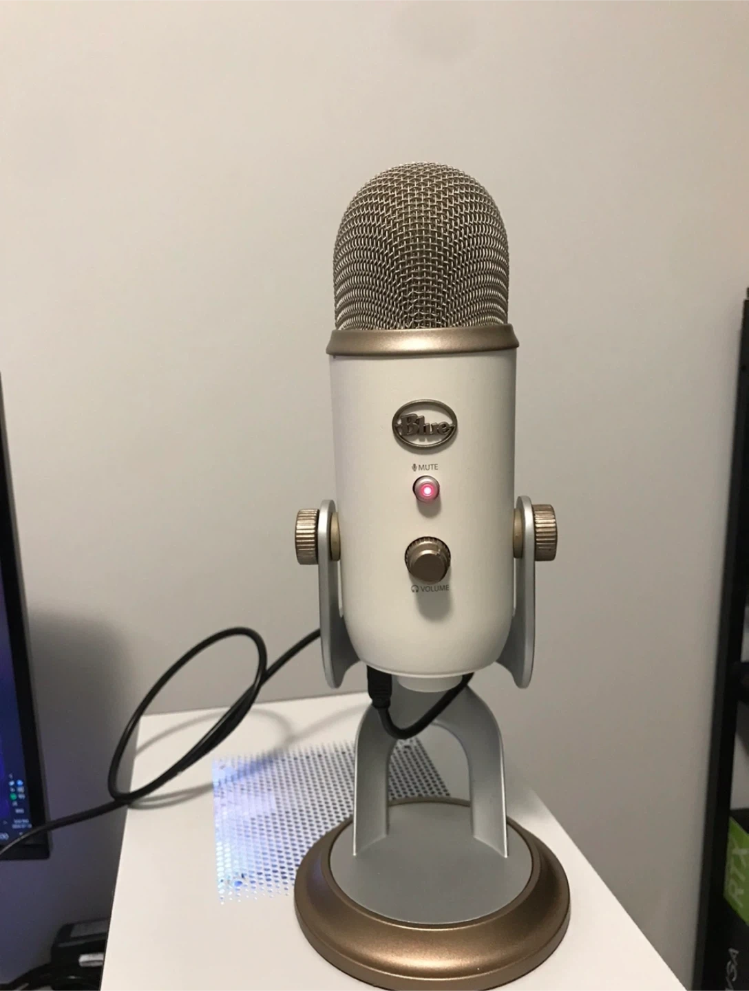 Selling a Blue Yeti USB microphone in white and gold. It's in great shape and ready for your next recording or streaming session! The Blue Yeti is known for its excellent sound quality and versatility. USB microphone, works perfectly, simply don’t need it anymore.