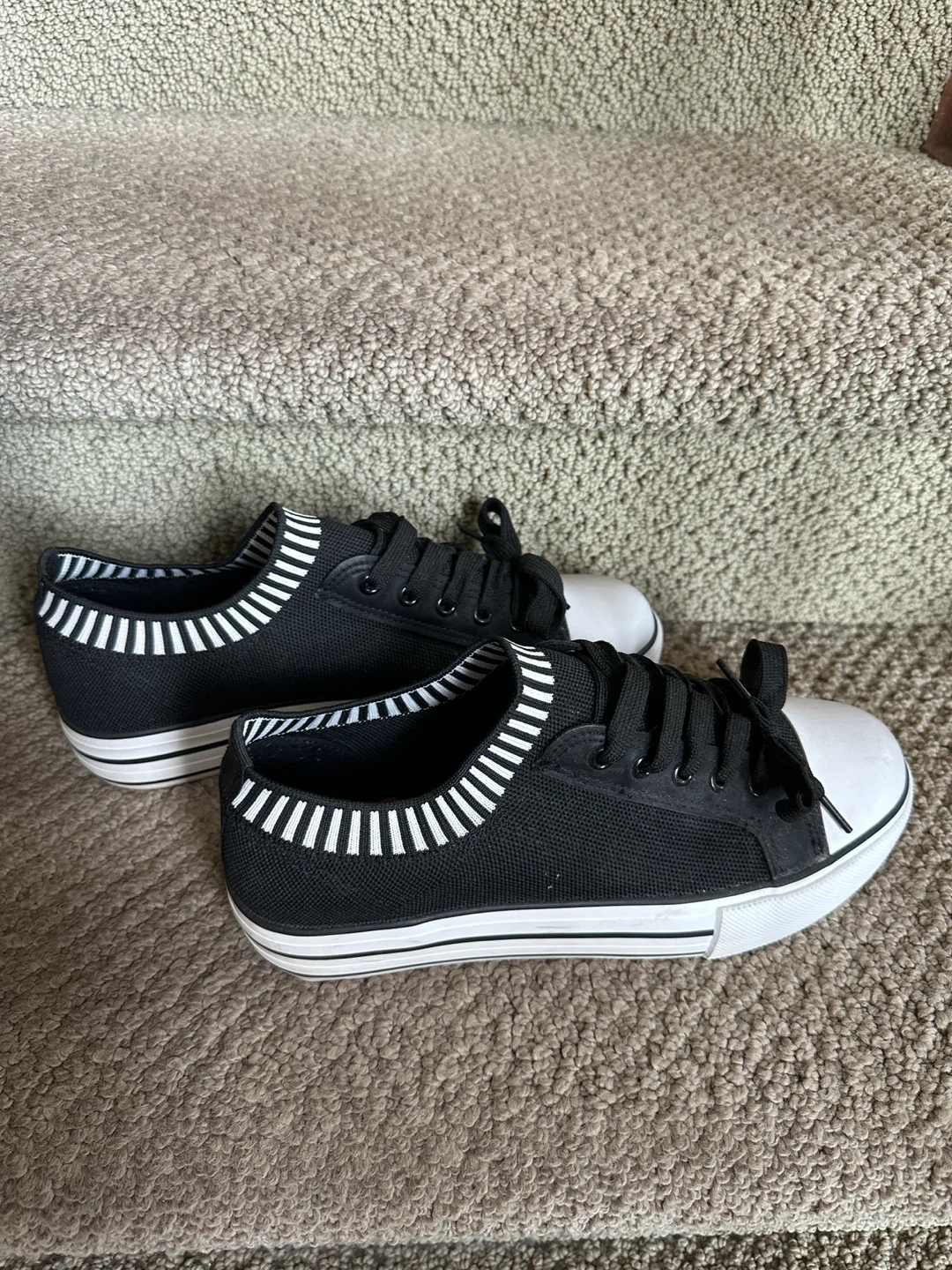 Selling a pair of Olivia Miller sneakers in black and white. They're in great condition and are a size 10. Perfect for casual wear!