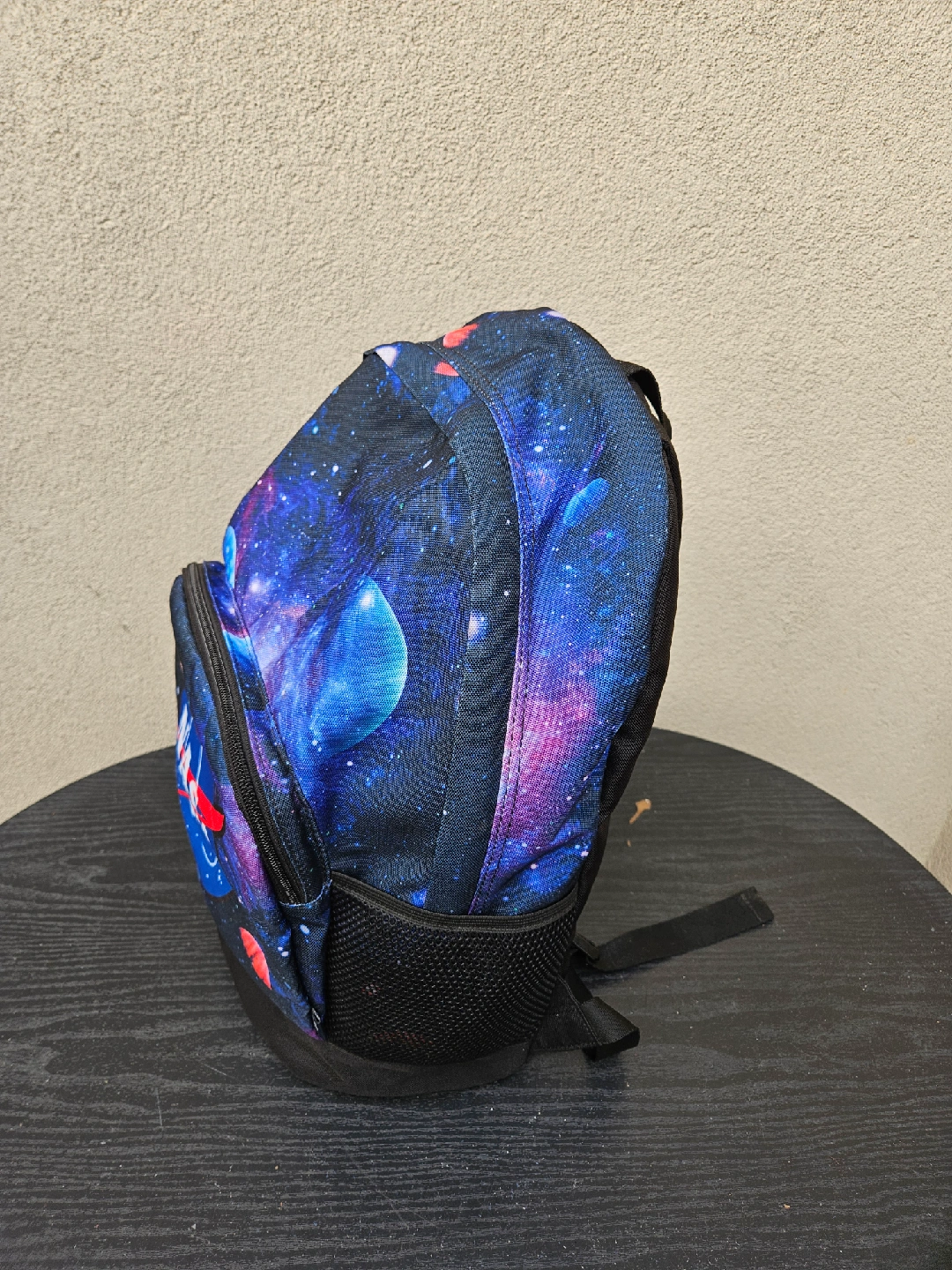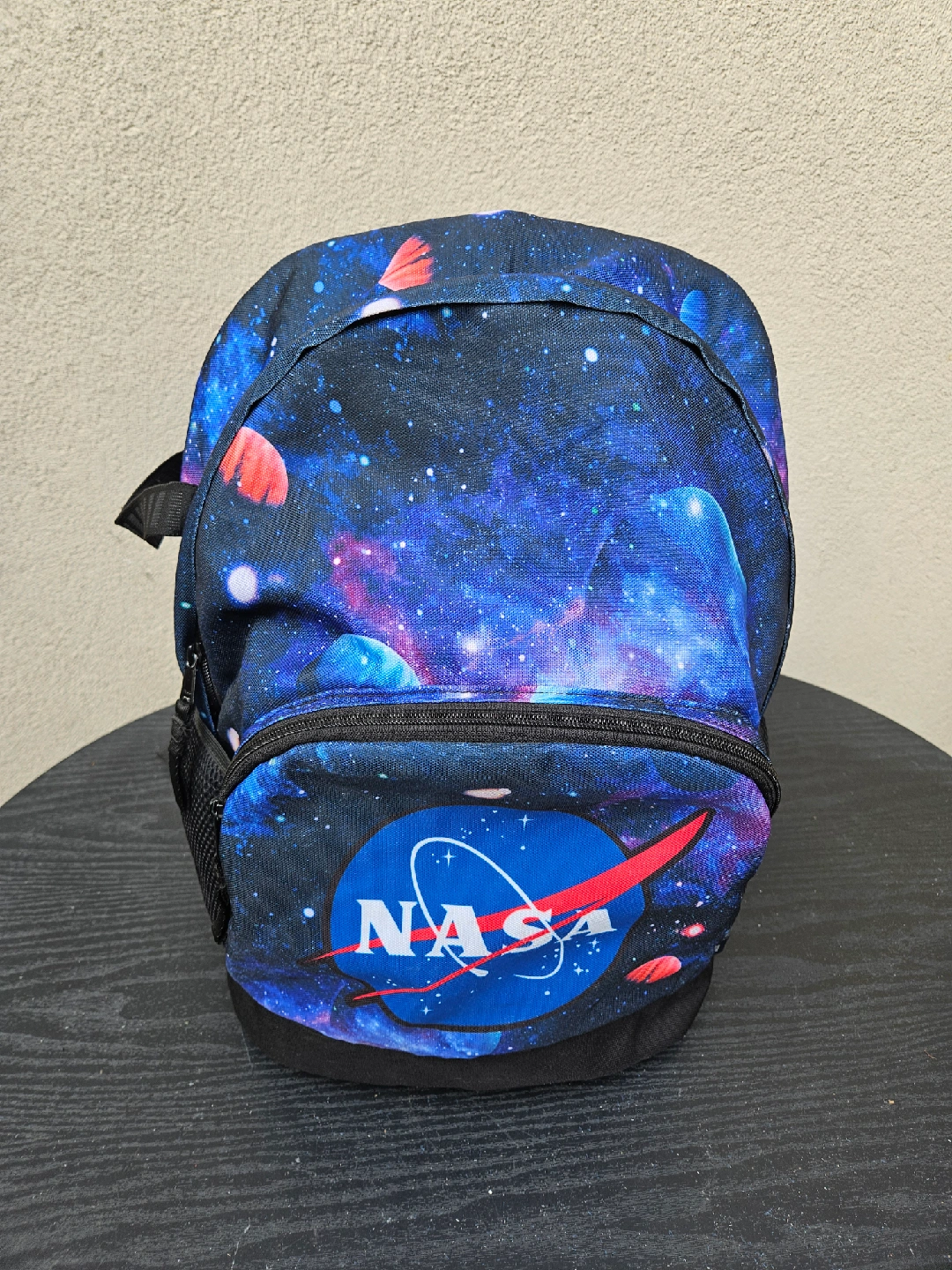 Cool NASA backpack with a galaxy print! It's in great shape and ready for a new adventure, whether it's school, travel, or just exploring the neighbourhood