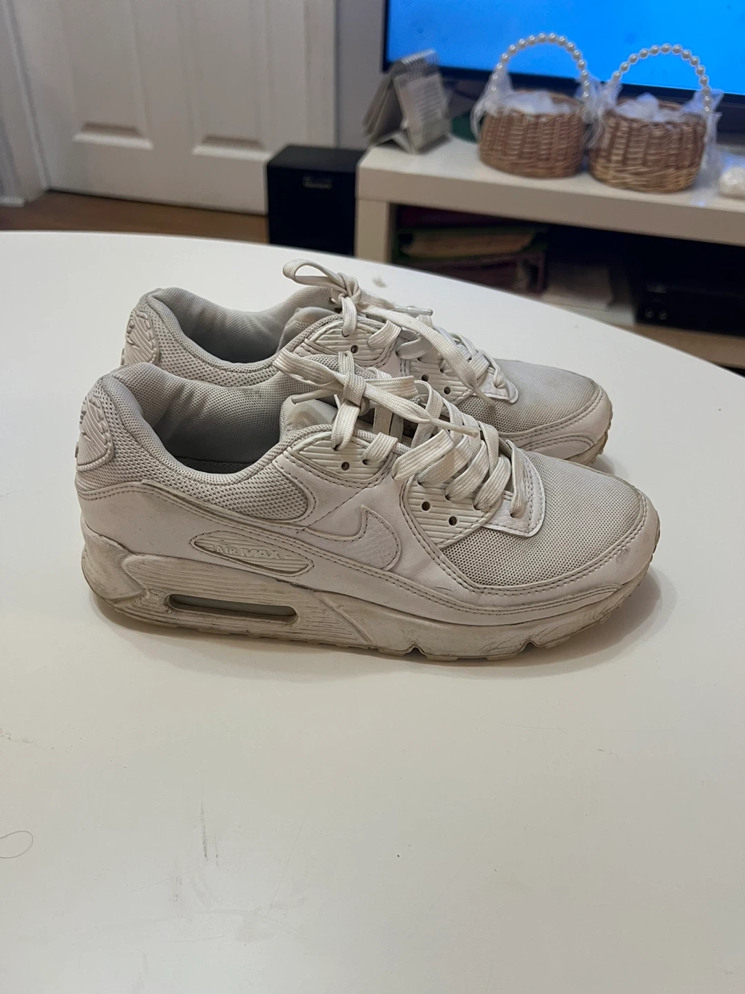 374Selling a pair of Nike Air Max 90 sneakers. Good condition. Size 7.5. A classic and comfortable shoe!