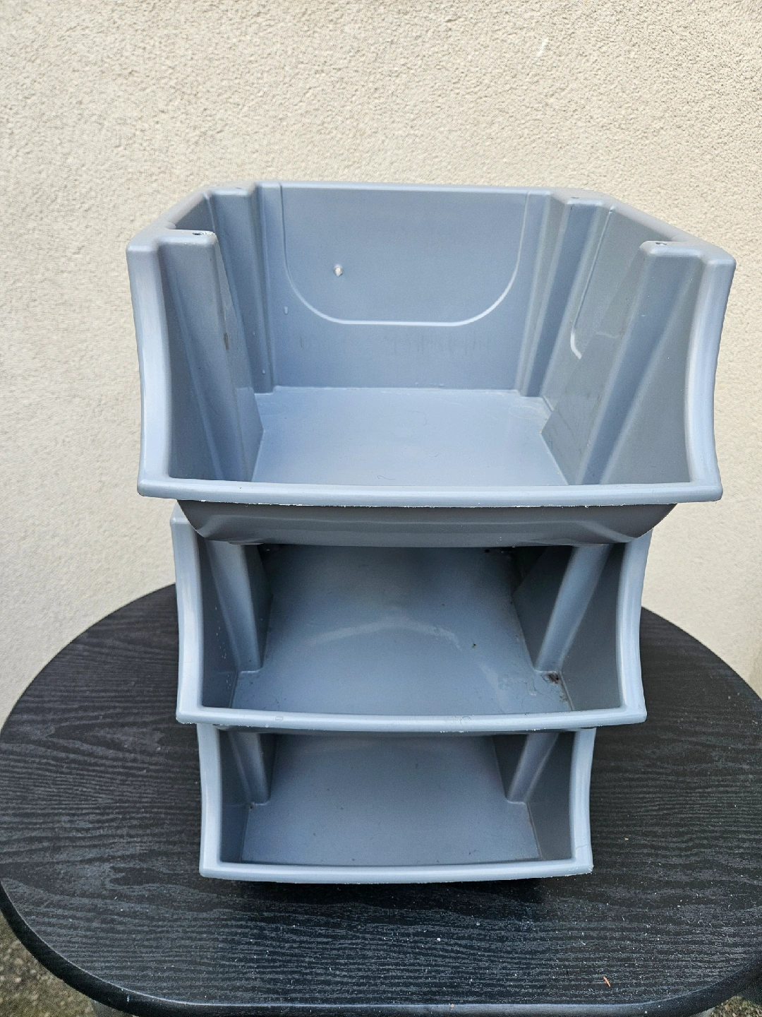Selling 3 kids stackable gray vertical storage bins.. Organizer.