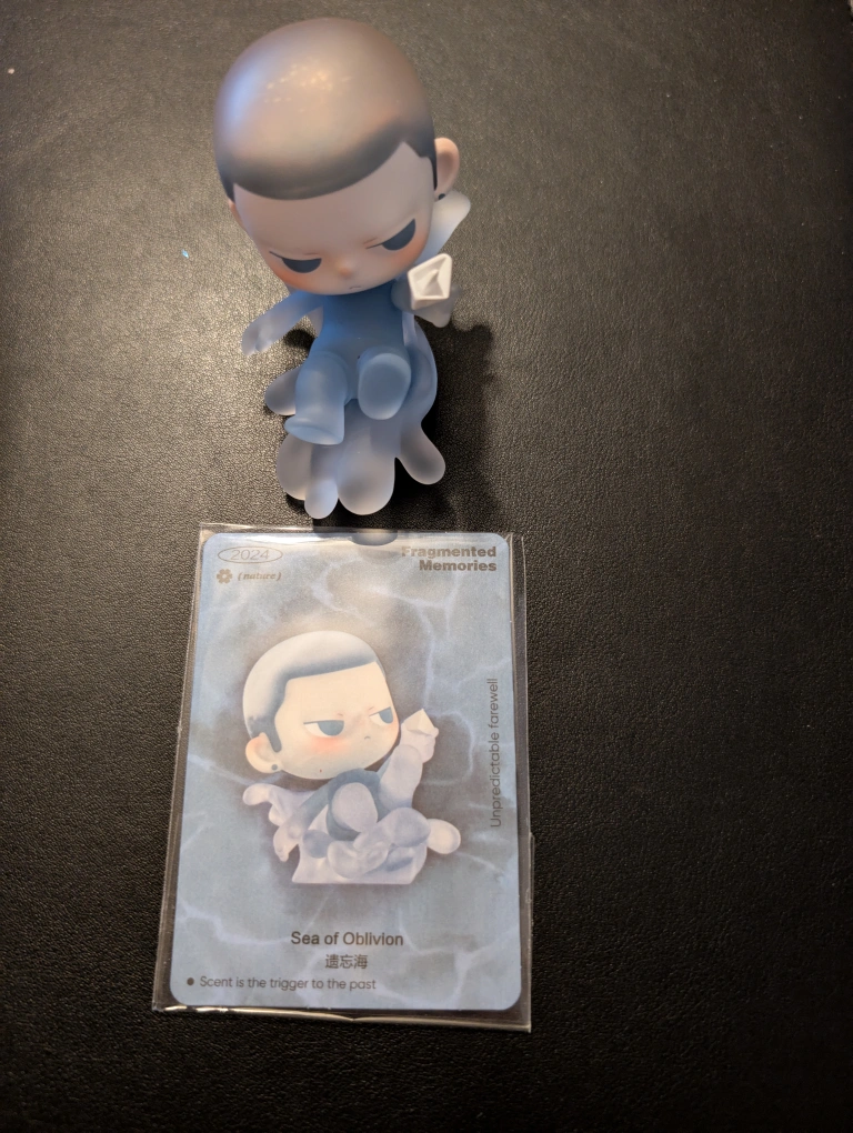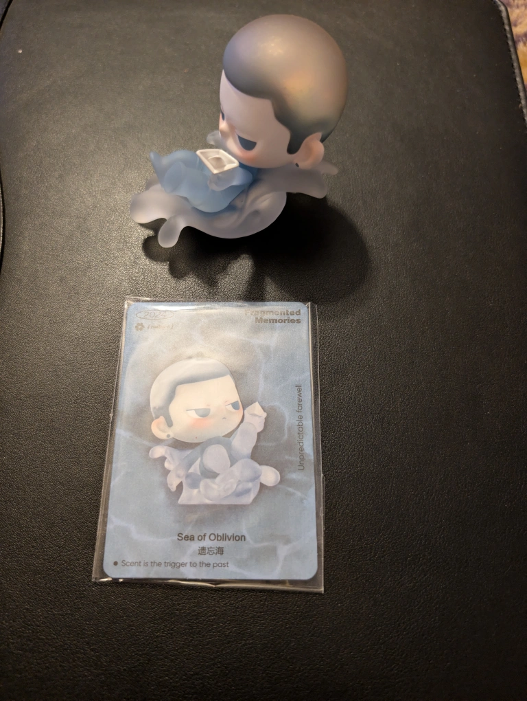 Selling a 2024 POP Mart Kubo Breathing In series collectible figure Fragmented Memories figurine named Sea of Oblivion! It's a cute collectible piece. The card included says "Scent is the trigger to the past" New no box