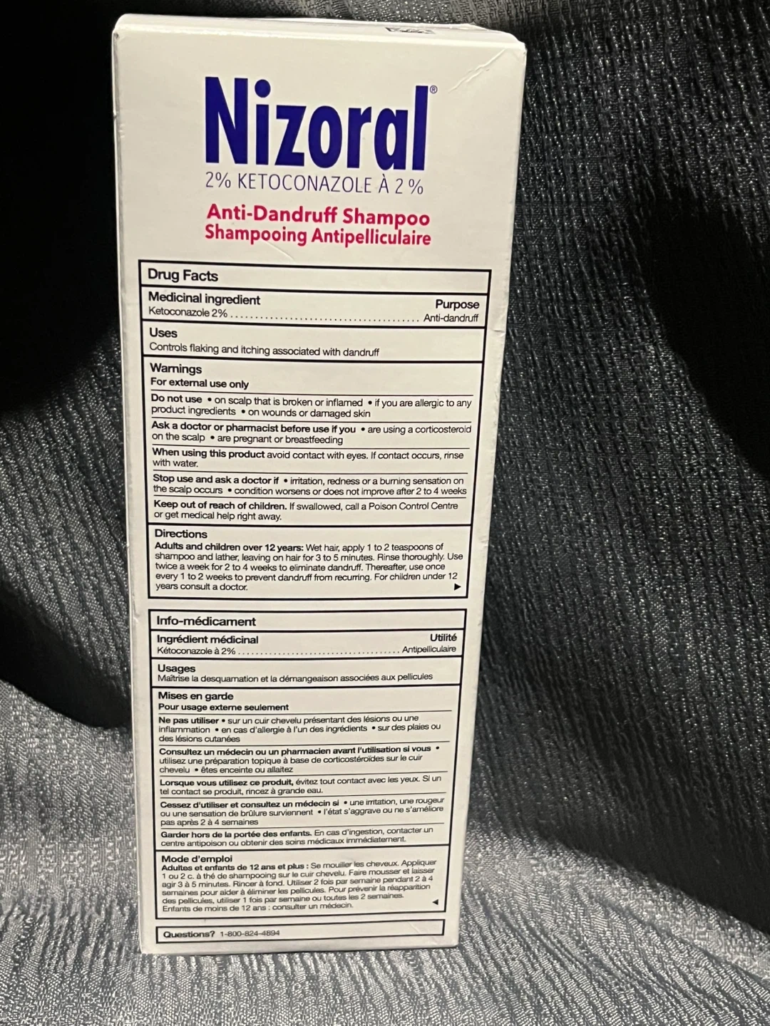 1000+I'm selling a brand new bottle of Nizoral Anti-Dandruff Shampoo! This is the 325mL value size. It eliminates and prevents dandruff, and kills the fungus that causes dandruff and seborrhea. Expiry date is 2027 April