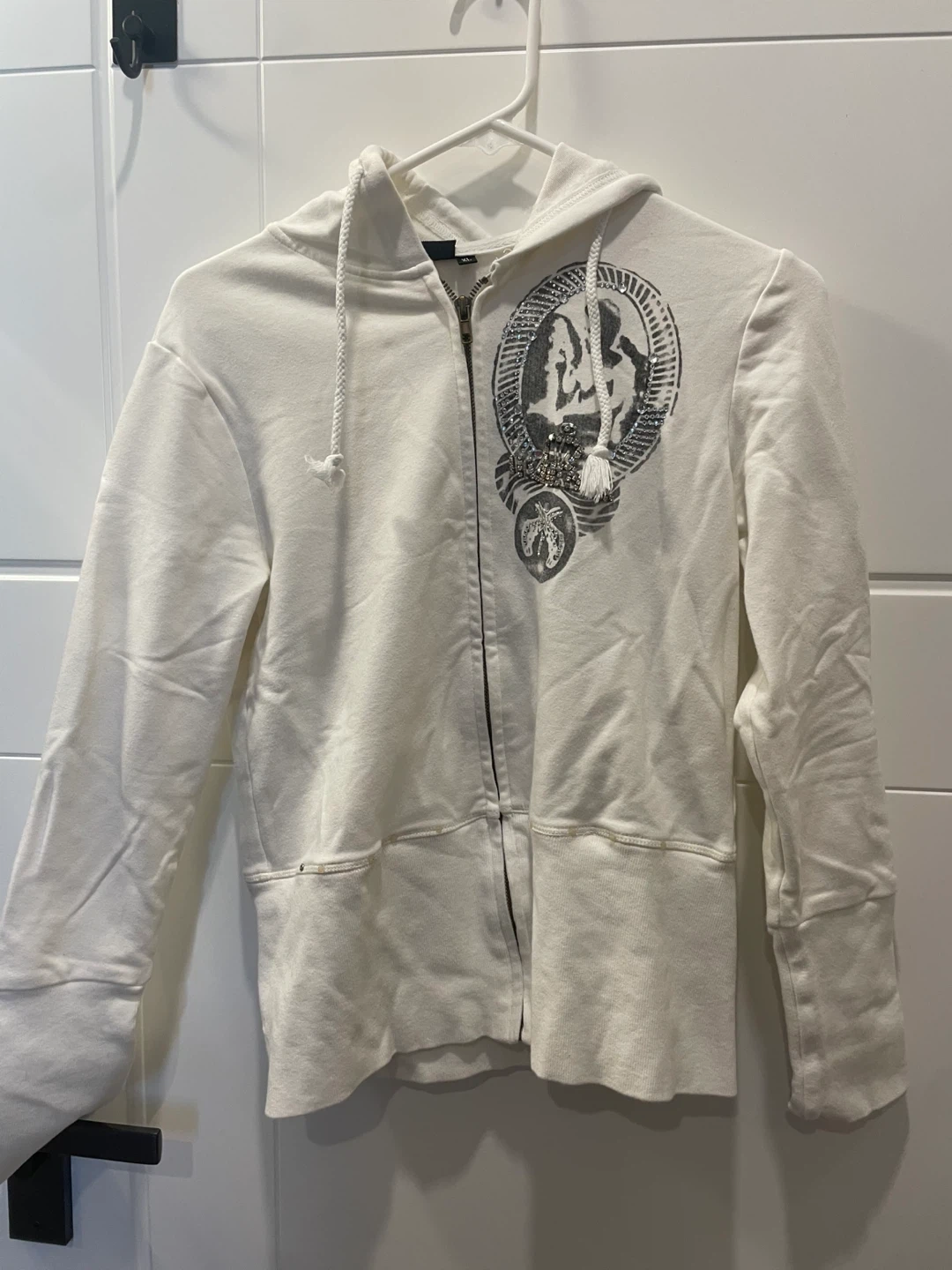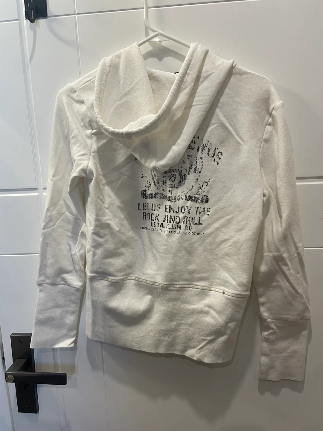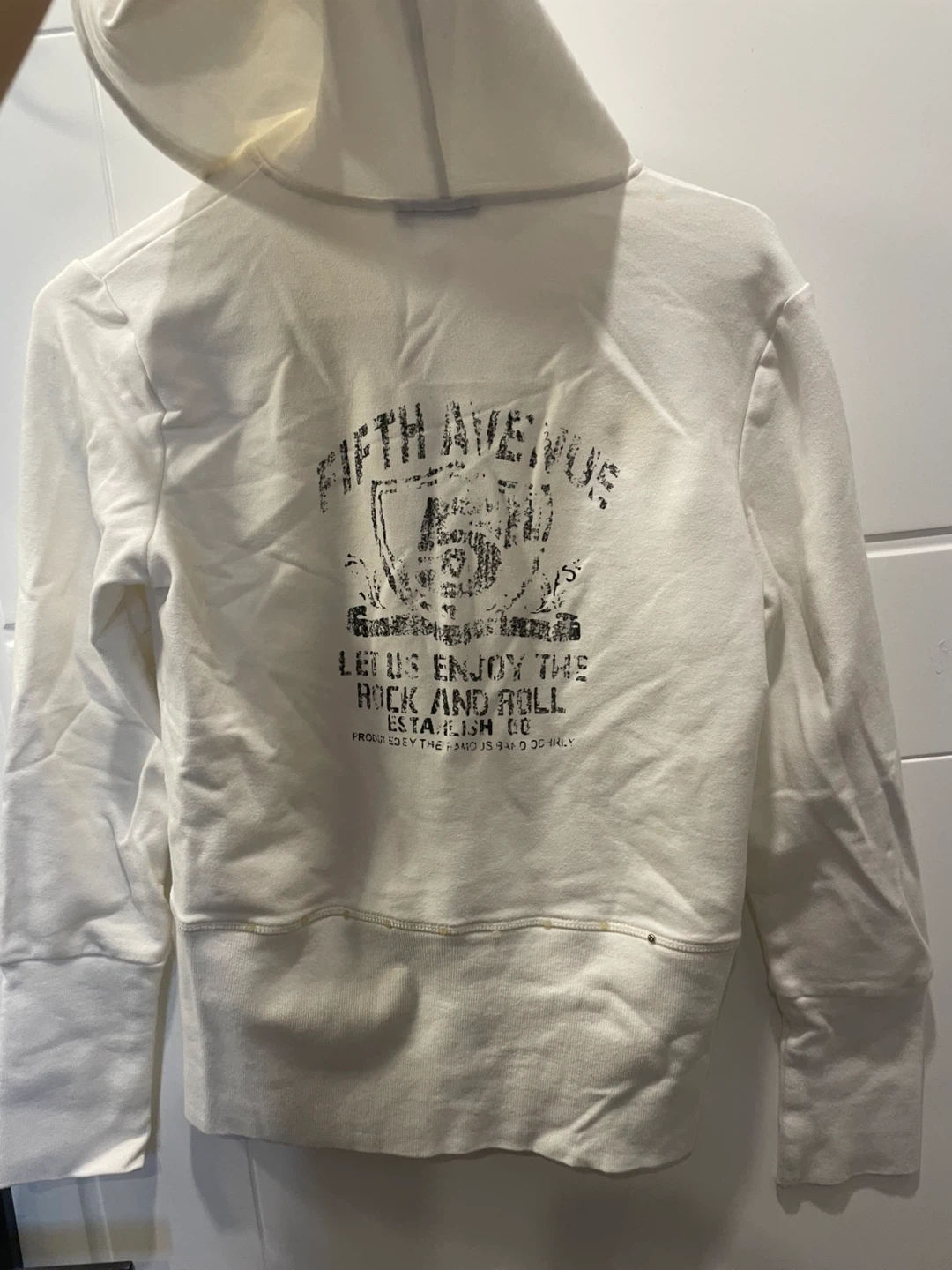 71Cozy white hoodie from Fifth Avenue. It features a cool design on the front and back. Size small and in great condition!