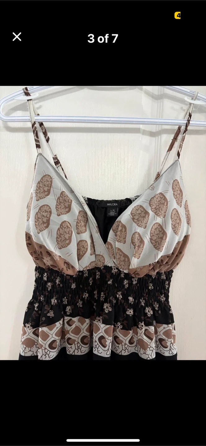 Cute sundress from Majora! It's a size large and features a unique pattern. Perfect for summer days!