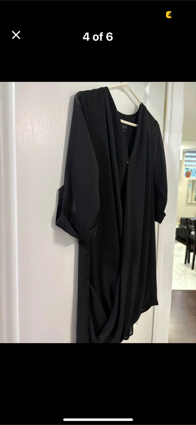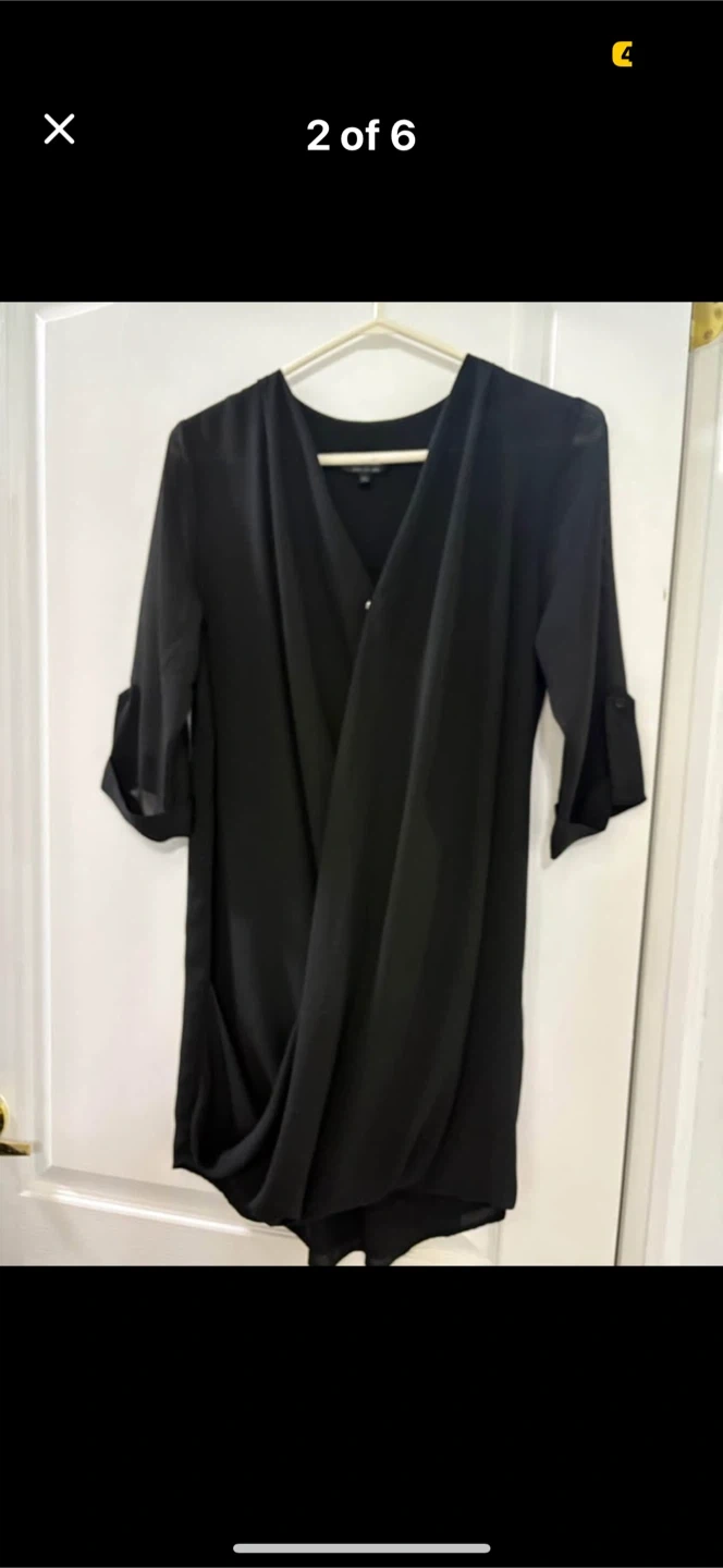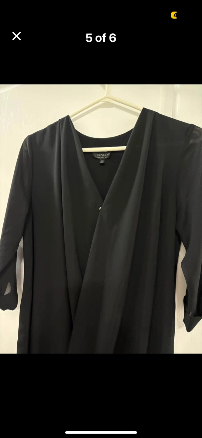 Selling a Topshop black dress. It's a size US 4. The dress is in great condition and has a stylish wrap design. Perfect for any occasion!
