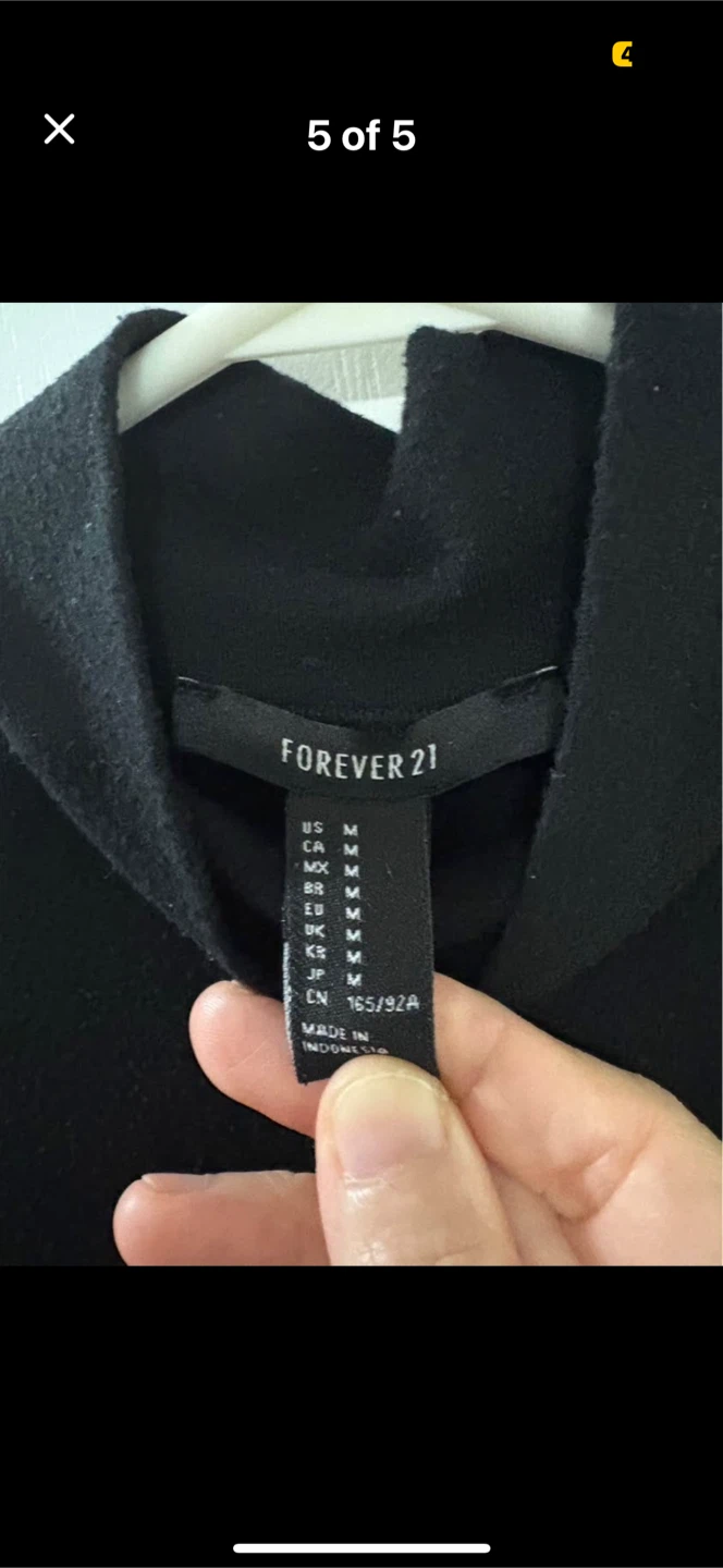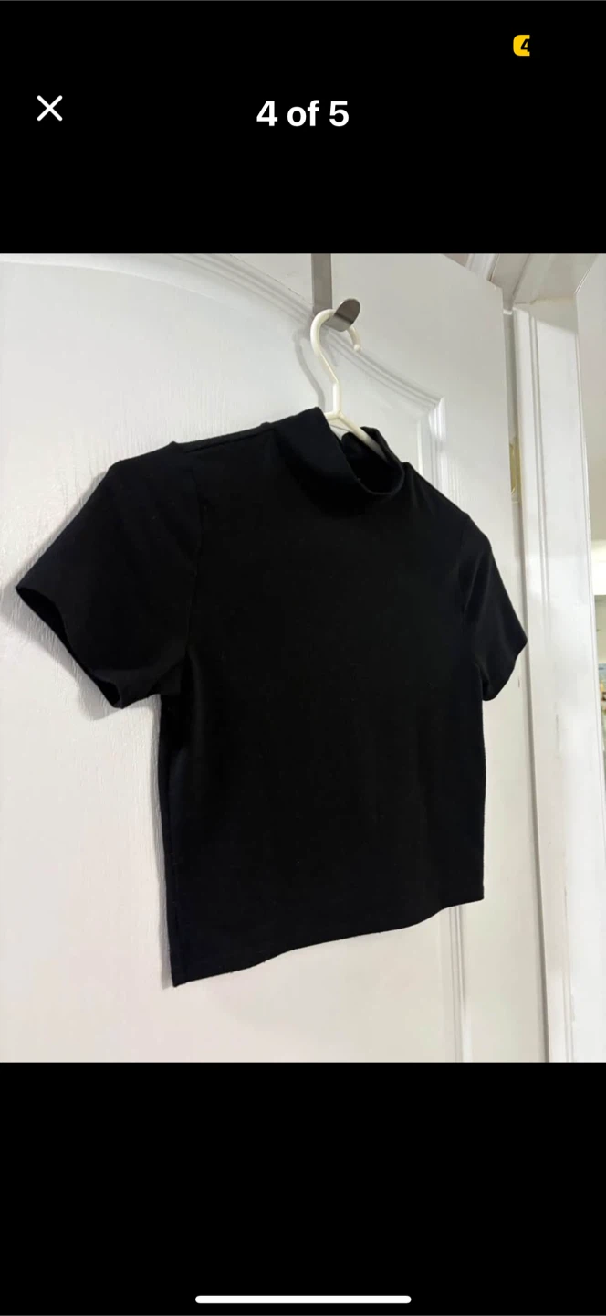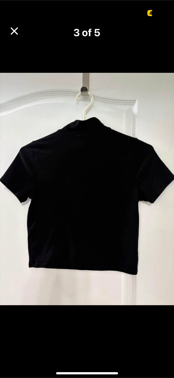 Selling a Forever 21 black mock neck crop top in size small. It's in great condition and would be a stylish addition to your wardrobe! The material is soft and comfortable, perfect for everyday wear.