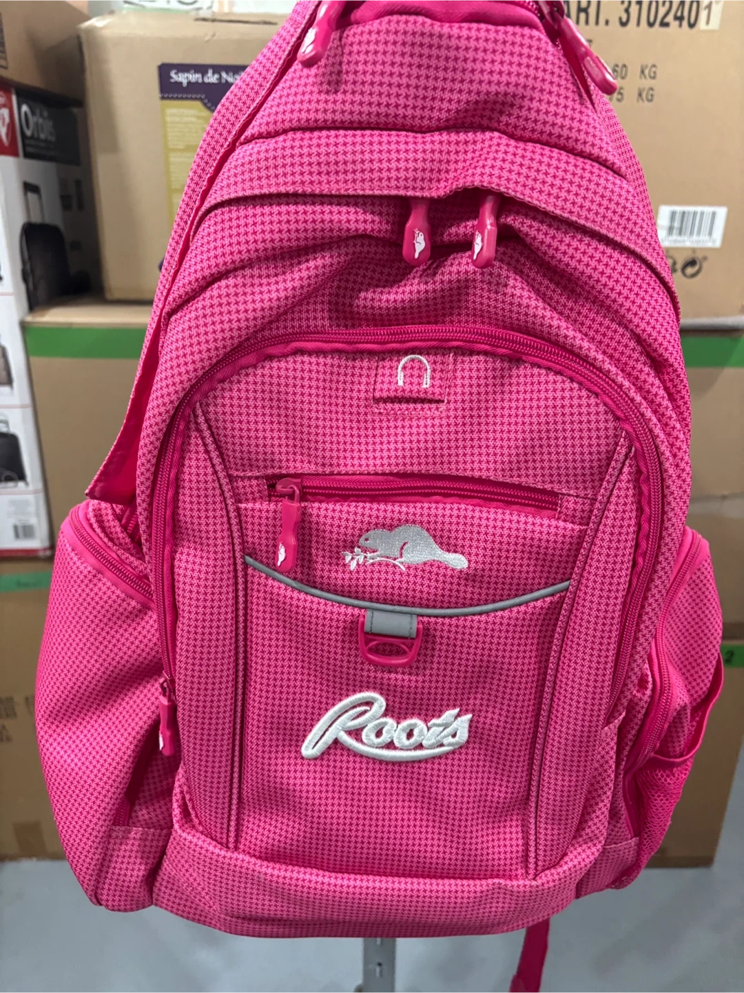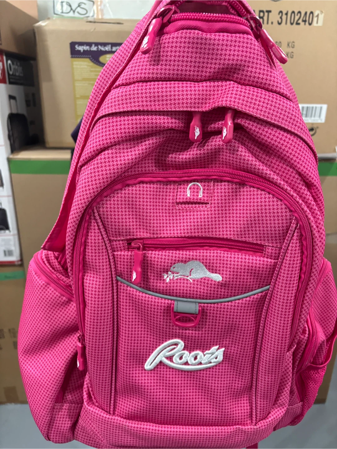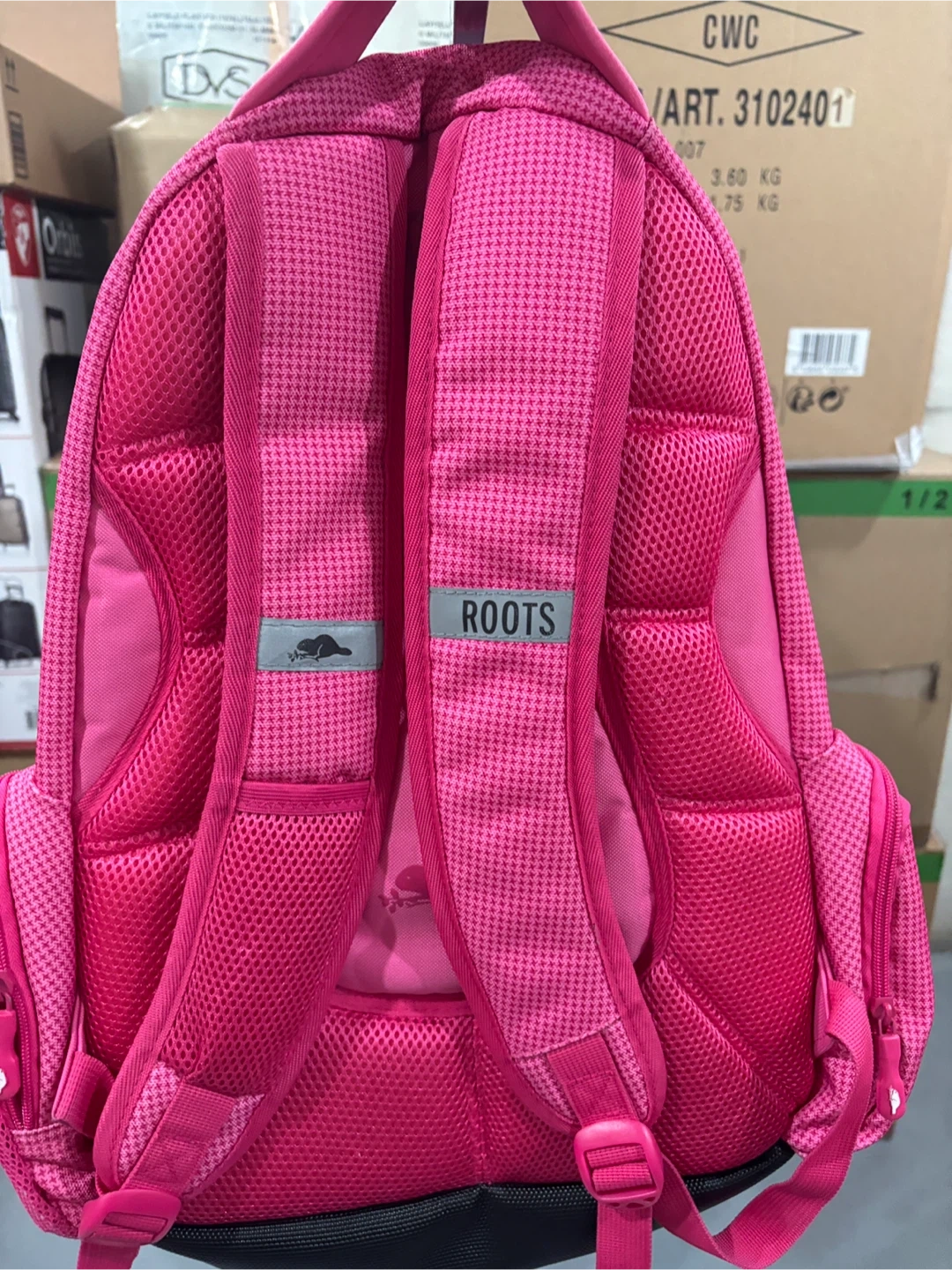 This vibrant pink Roots backpack is perfect for school, travel, or everyday use! It's in great condition, ready to carry your essentials in style. The backpack features multiple compartments, including a front pocket with the iconic Roots logo, side pockets for water bottles, and adjustable padded straps for comfortable wear.