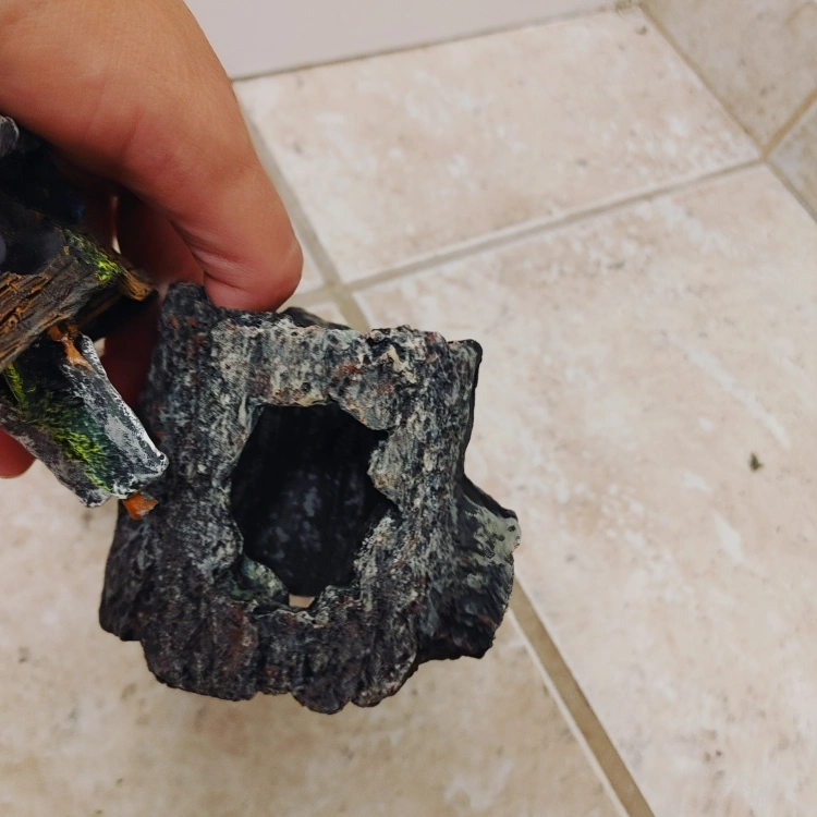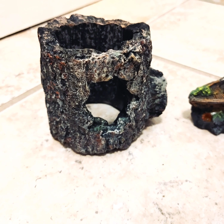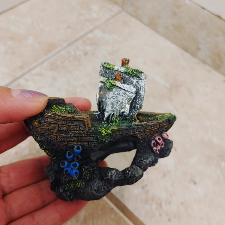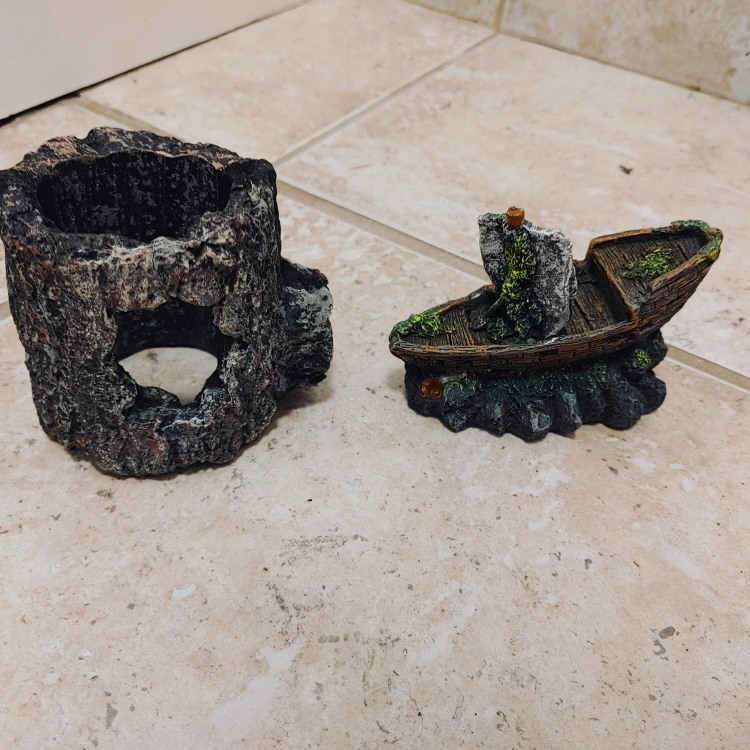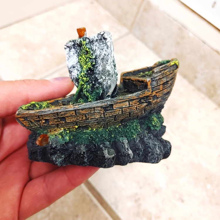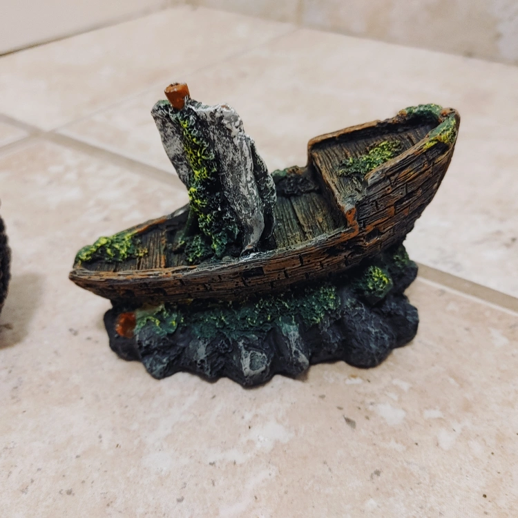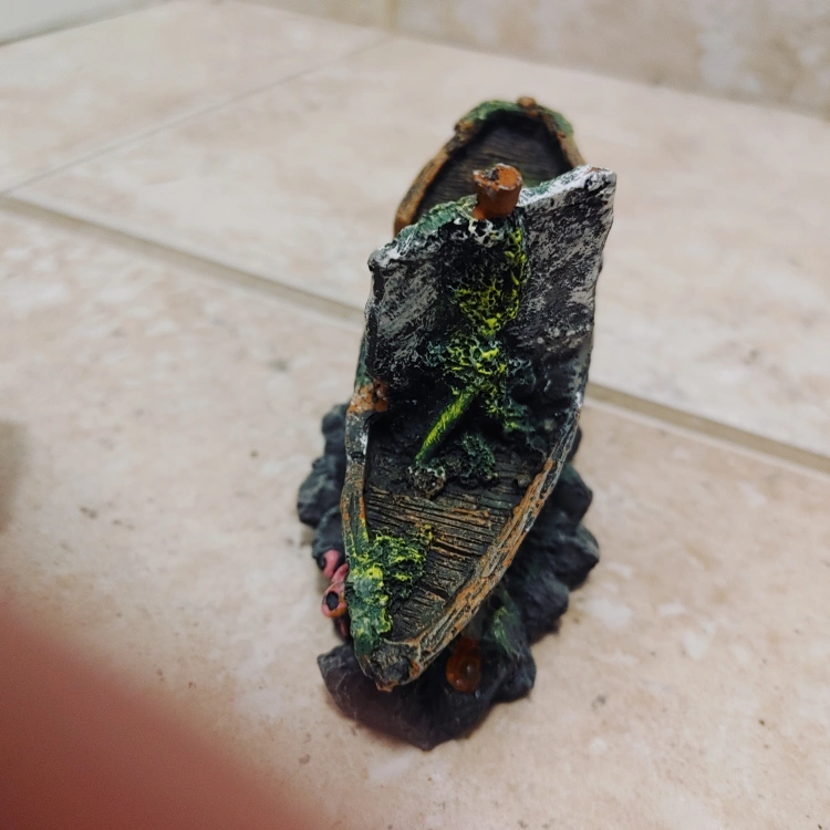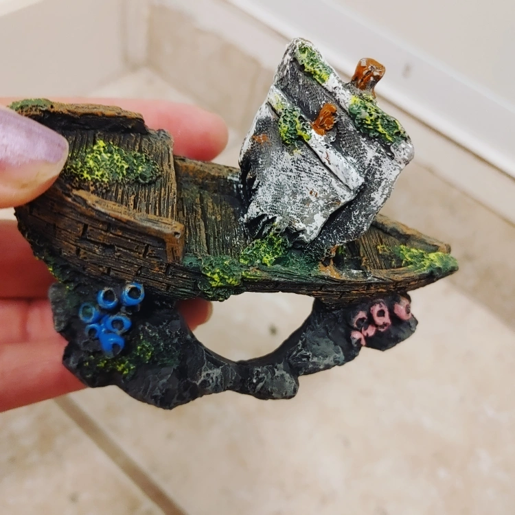 Add a unique touch to your aquarium with this shipwreck ornament! It has a cool, weathered look with some greenery and coral accents. Perfect for creating a fun and interesting underwater scene for your fish Both for $10