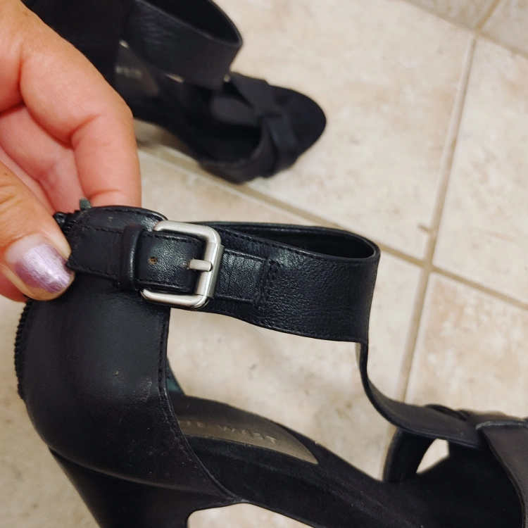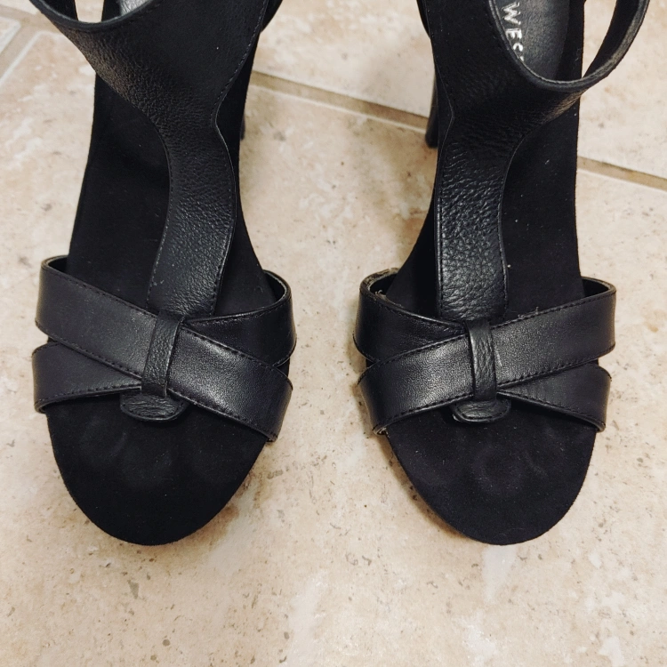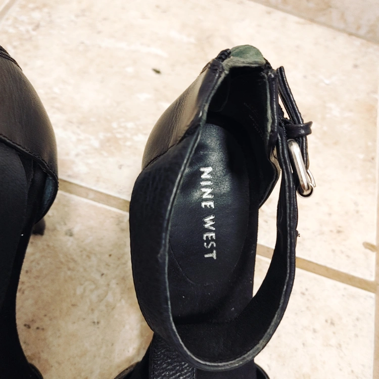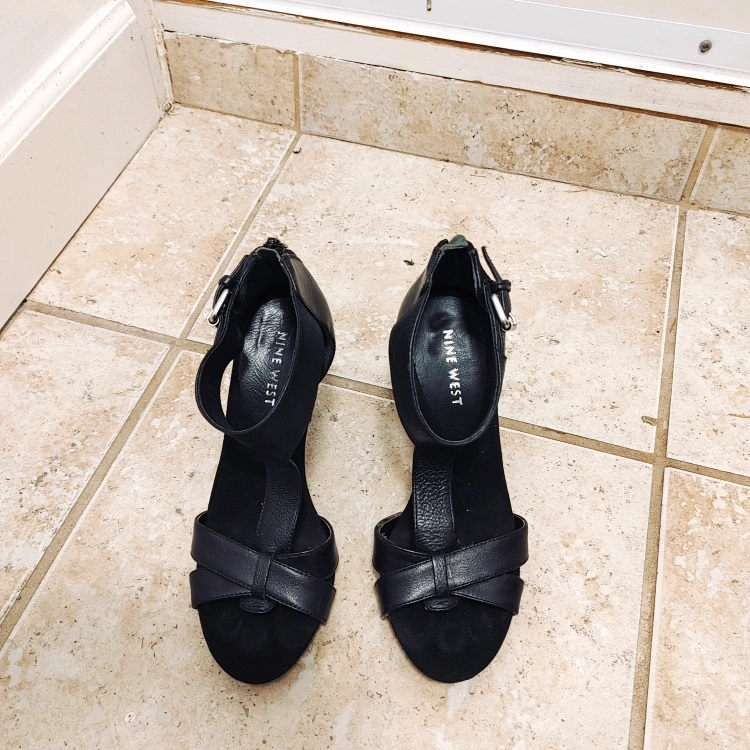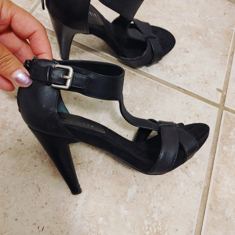 Selling a pair of Nine West black heels in size 5. They feature a stylish T-strap design with a bow detail. Perfect for a night out!