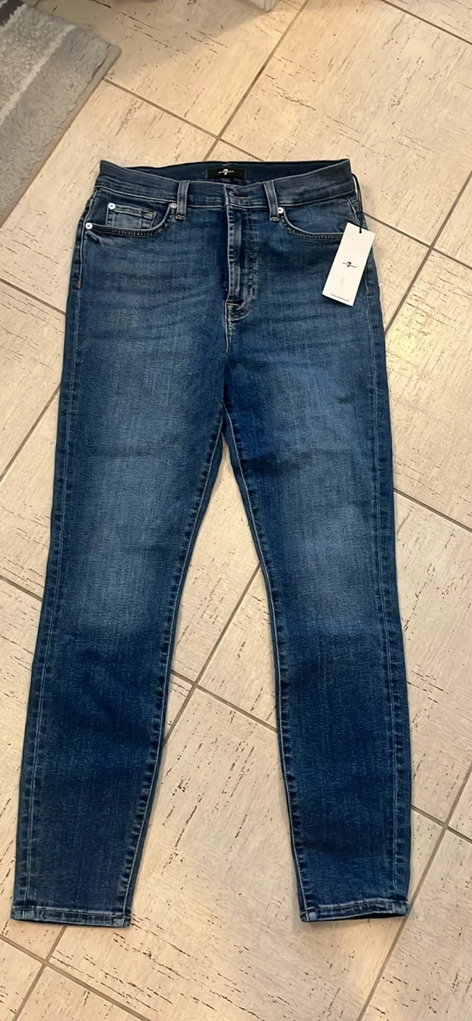 These 7 For All Mankind jeans are brand new with tags! They're a stylish dark wash denim, perfect for any casual outfit. Great condition and ready for a new home! Size 27 Never worn. Purchased for 200.00 Tags on