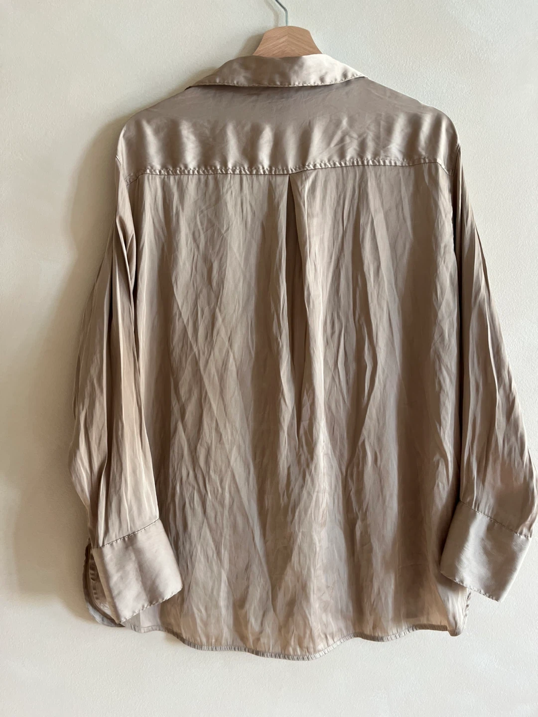 Barely worn twice. Old Navy button-up shirt in size medium! It's a beautiful, golden-ish colour with a shiny finish.