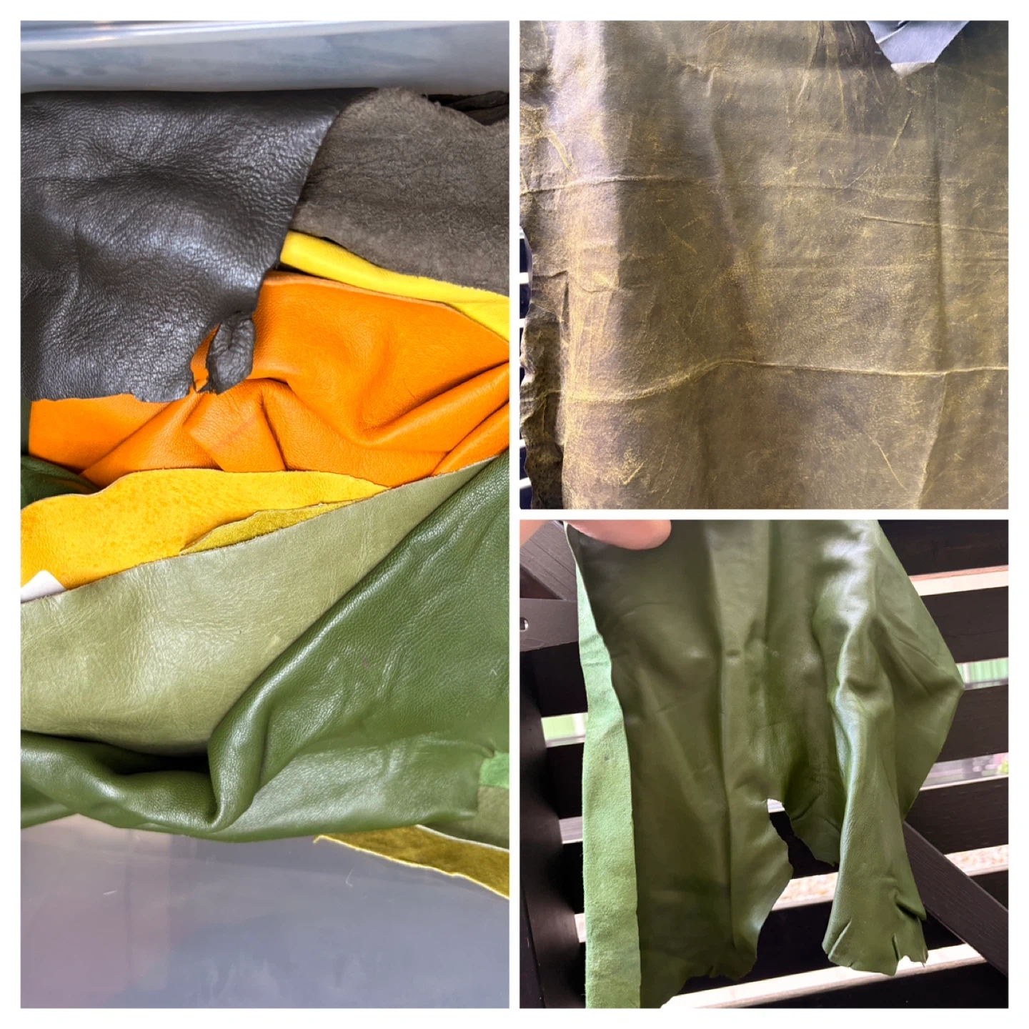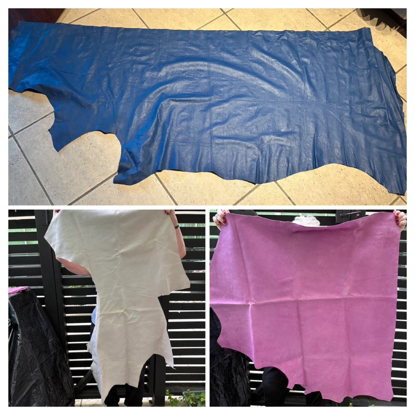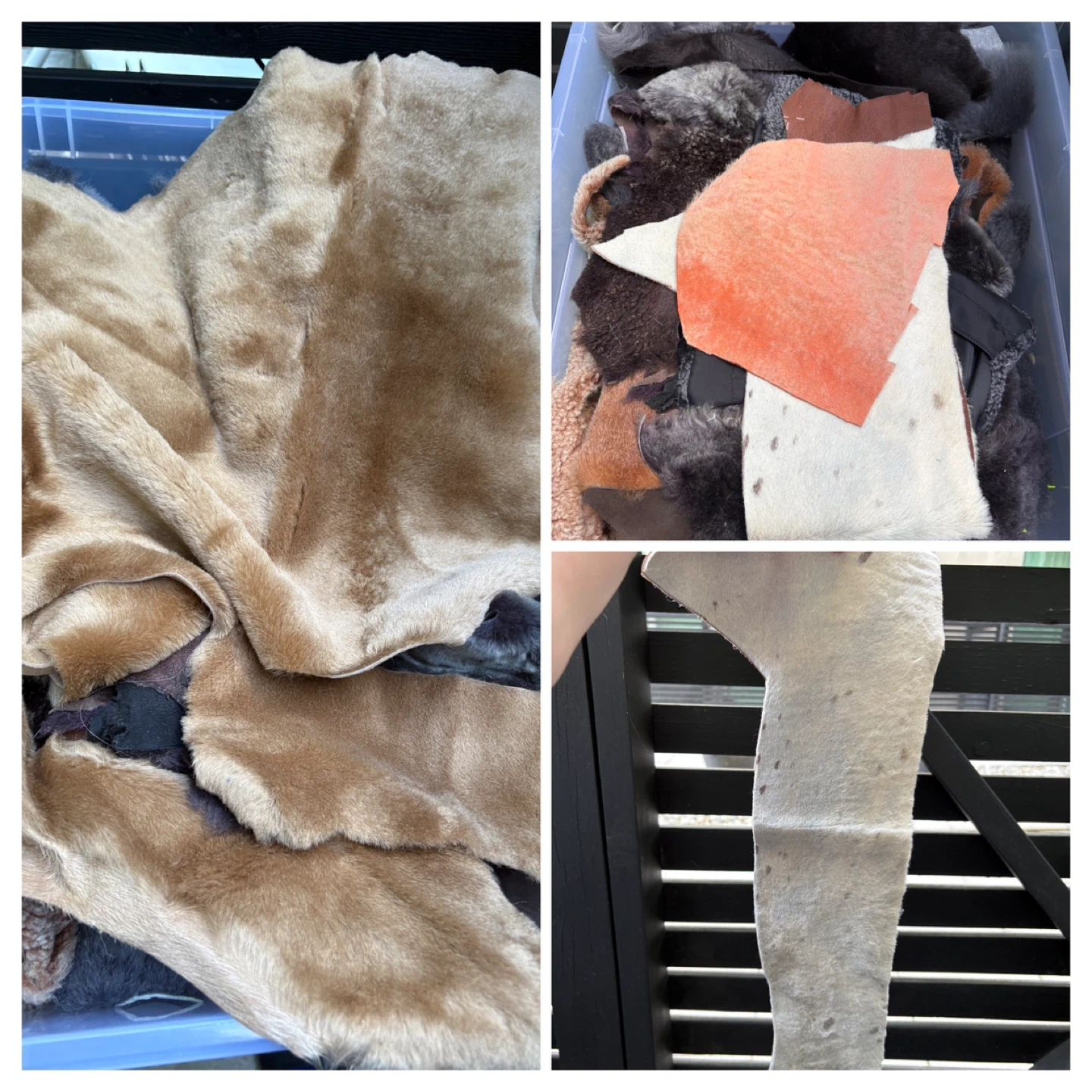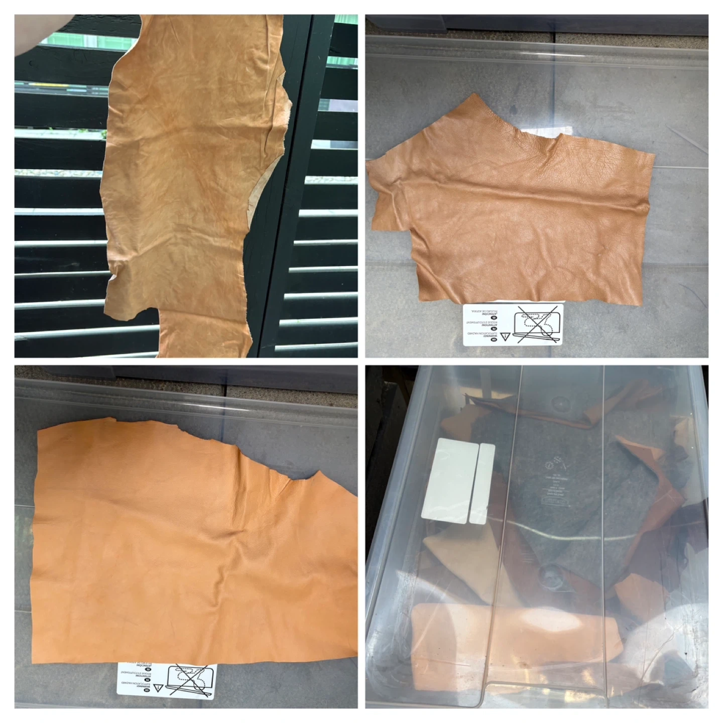 1x IKEA SAMLA 17 Gallon Tote Various Shearling scraps - Mostly grey and browns 1x 32 Liter Tote with handles Various Leather scraps - Various Browns 4x IKEA SAMLA 12 Gallon Totes -Various Leather scraps - Black - Medium Browns - Dark Browns - Dark Brown very small scraps 5x IKEA SAMLA 6 Gallon Totes Various Leather scraps - Purple/Blue - Green/Yellow - White/Cream/Bone - Random patterns - Red/Pink Large extremely light pink (could almost be mistaken for bone) leather piece approx. 46” x 24” at longest and widest parts Large thick pink leather piece approx 36” x 37” at longest and widest parts Large roll of thick blue leather approx 79” x 32” at longest and widest parts NOTE: leather scraps in photos are generally smaller than an 8.5” x 11” sheet of paper except for the random piece here and there that is larger. Various thicknesses but generally thin. Some have markings and/or sticker (can see in photos). SOLD AS A LOT INCLUDING BUCKETS More photos available upon request as Karrot restricts the number of photos you can post.