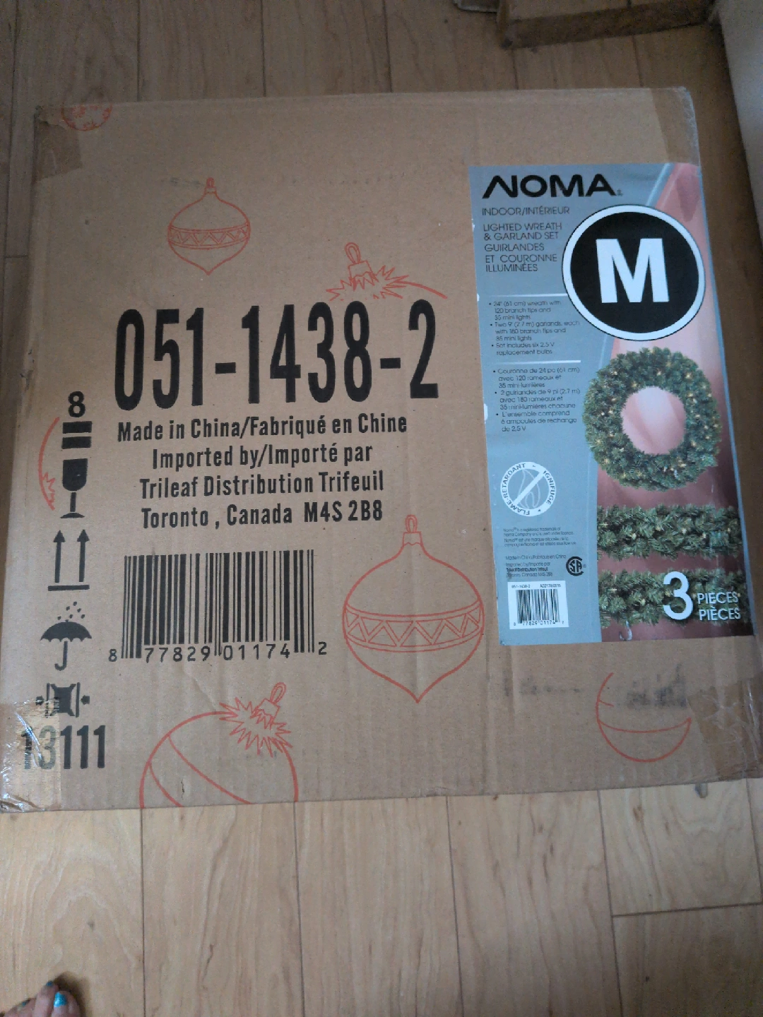 Selling a brand new NOMA indoor lighted wreath and garland set, still in its original box! This set includes a 24" (61 cm) wreath with 120 branch tips and 35 mini lights, plus two 9' (2.7 m) garlands, each with 180 branch tips and 35 mini lights. The set also includes six 2.5V replacement bulbs. Perfect for adding a festive touch to your home!