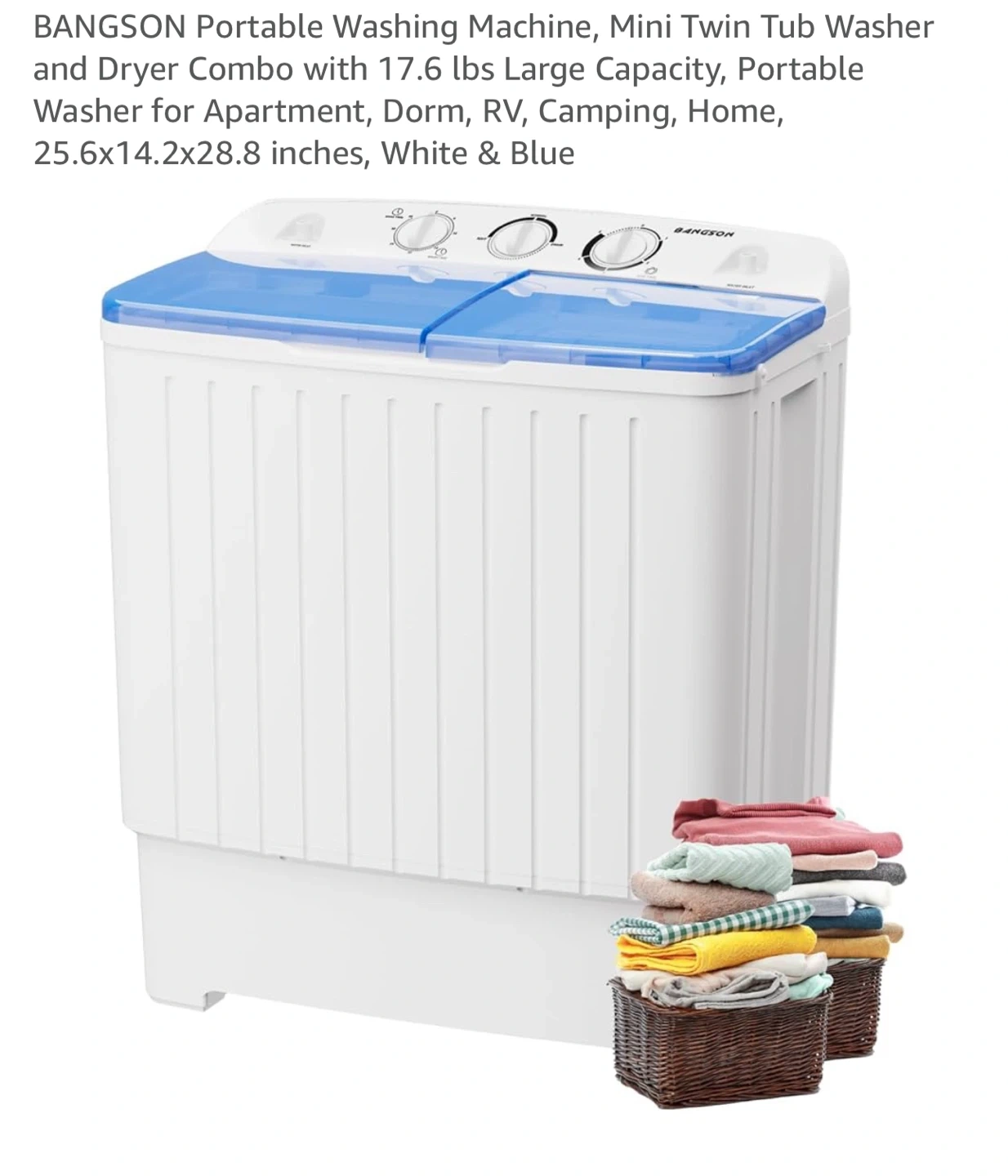 Selling a BANGSON portable mini washing machine and dryer combo. It features a twin tub design with a 17.6 lbs large capacity. Perfect for apartments, dorms, RVs, camping, or home use. Dimensions are 25.6 x 14.2 x 28.8 inches. It still in the box, was never used but we just don’t needed.